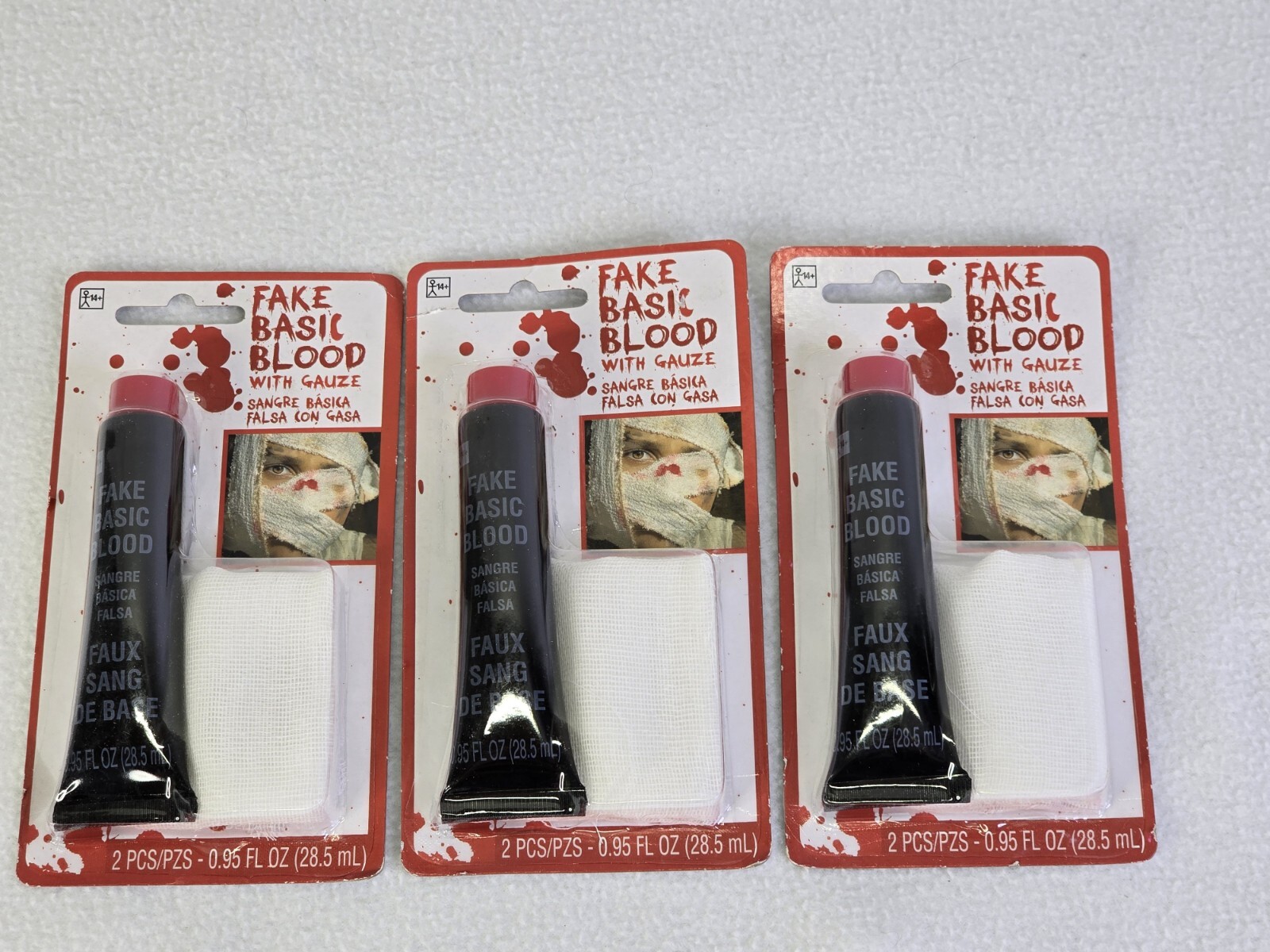 как выглядит Lot Of 3 Fake Basic Blood with Gauze Halloween Zombie 0.95 Fl OZ фото