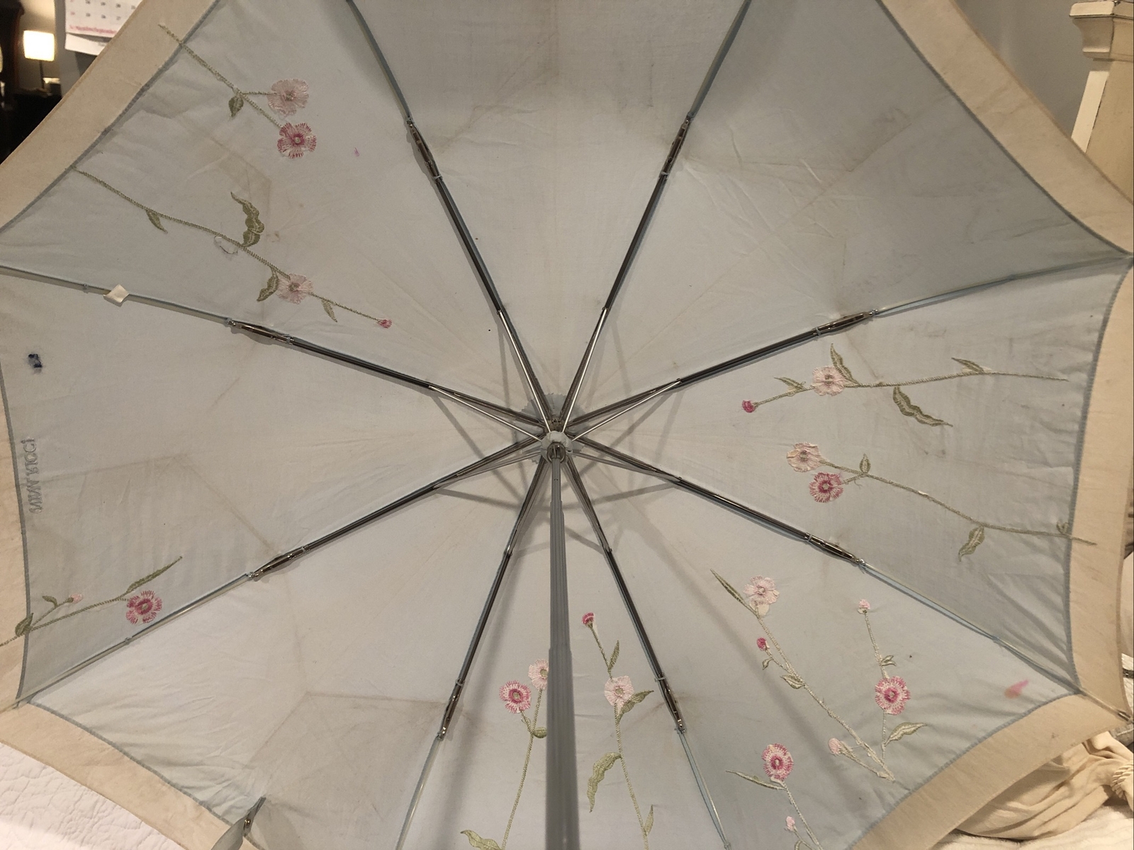 Vtg Umbrella Nina Ricci blue flowers embroidered
