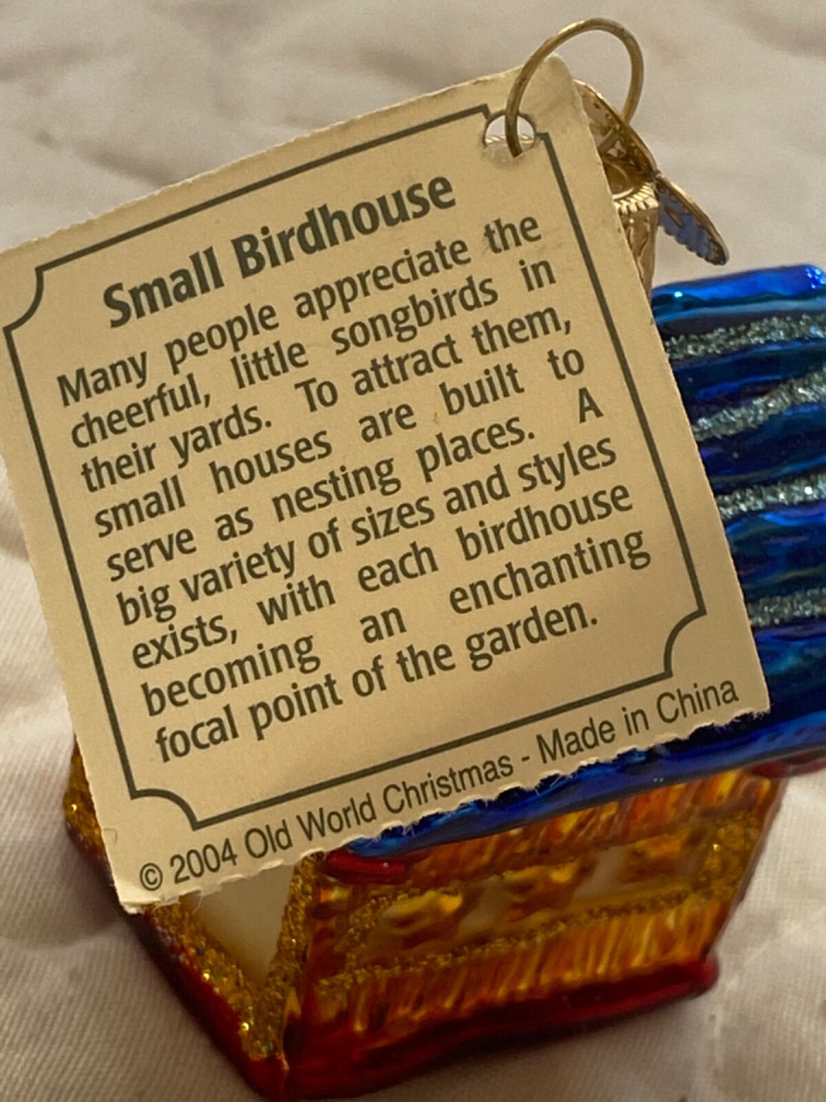 2004 Old World Christmas Blown Glass Birdhouse Blue Bird Ornament Glitter 2.5 T