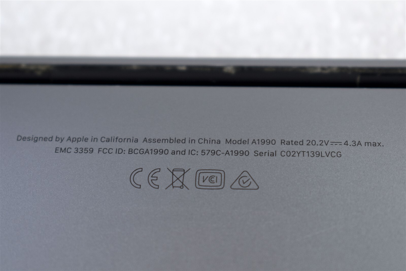 Apple MacBook Pro A1990 15 2019 Core i9 2.3GHz 16GB 512GB SSD C02YT139LVCG