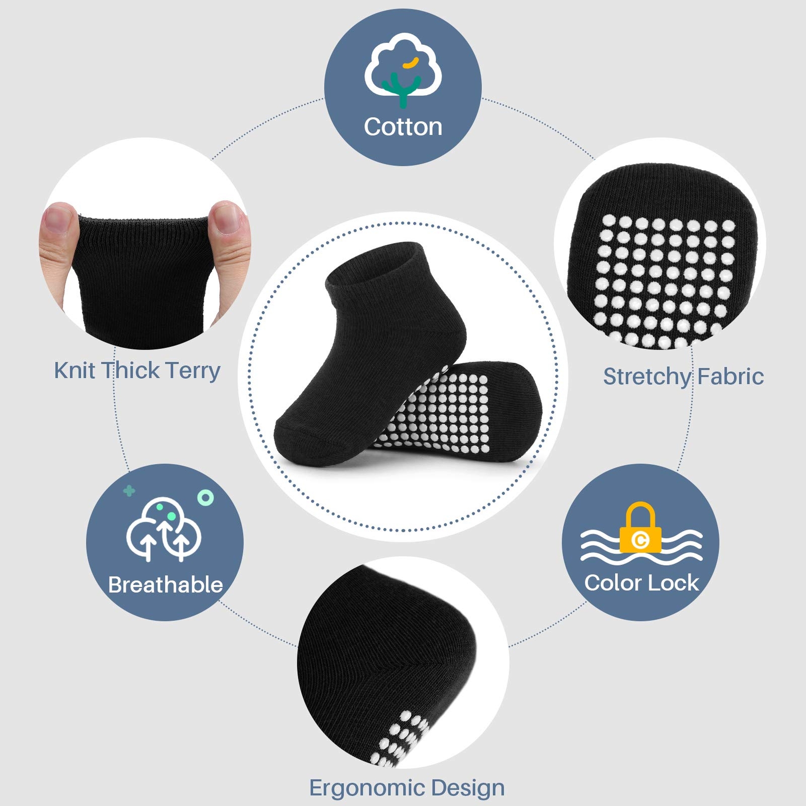 12 Pairs Baby Socks Non-Slip Toddler Socks With Grips for Baby Boys Girls - A...
