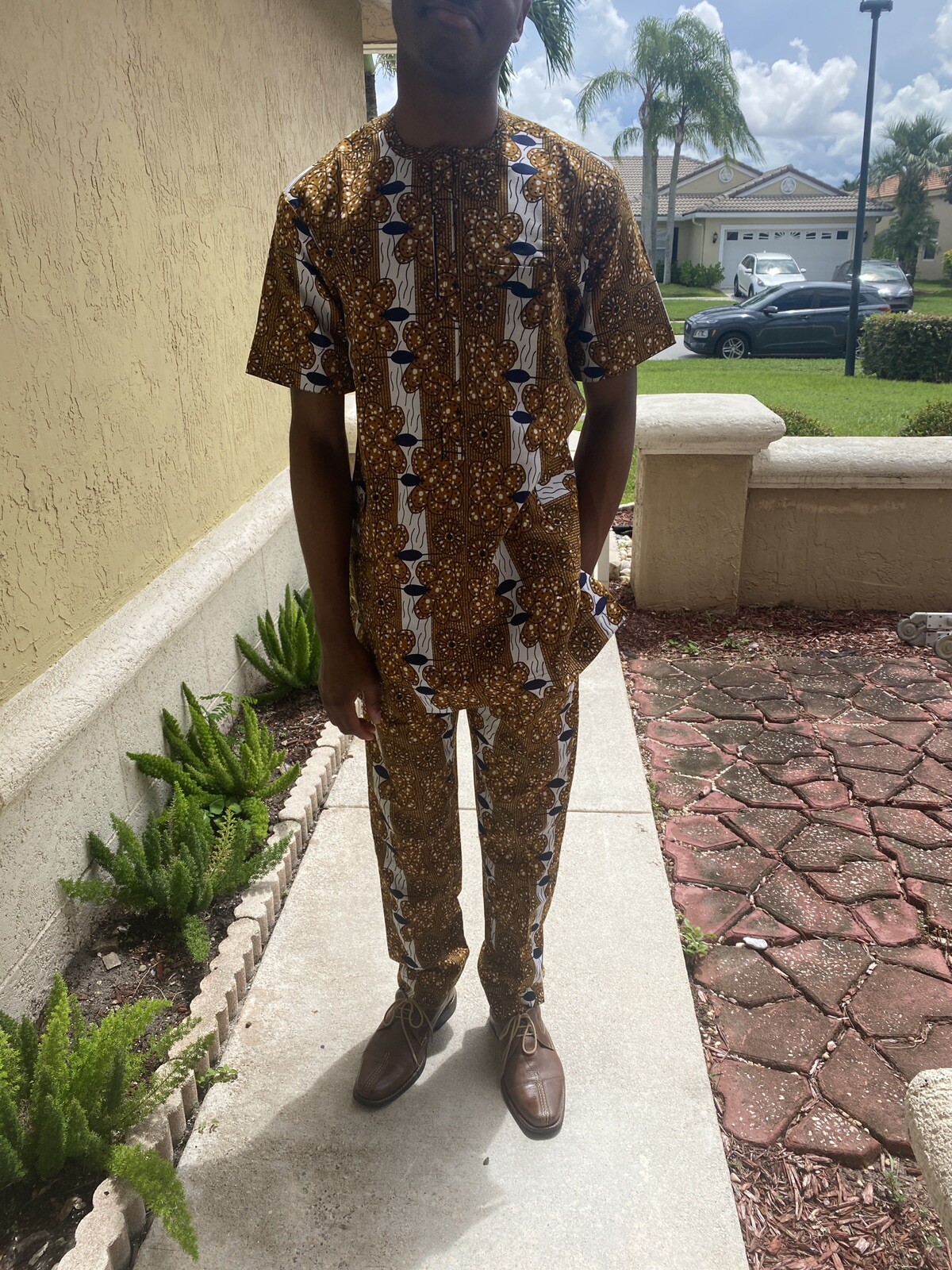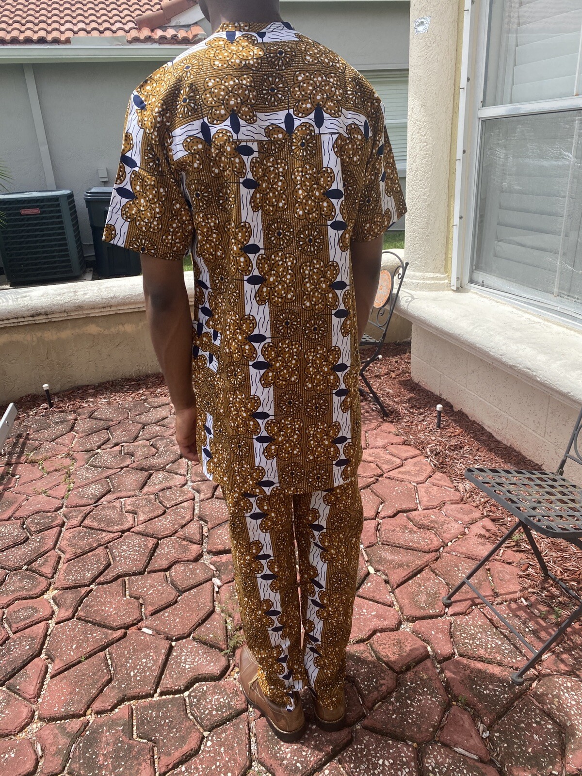 как выглядит AFRICAN/NIGERIAN MENS ANKARA COTTON PRINT SENATOR STYLE TOP PANT SKINNY MEDIUM фото