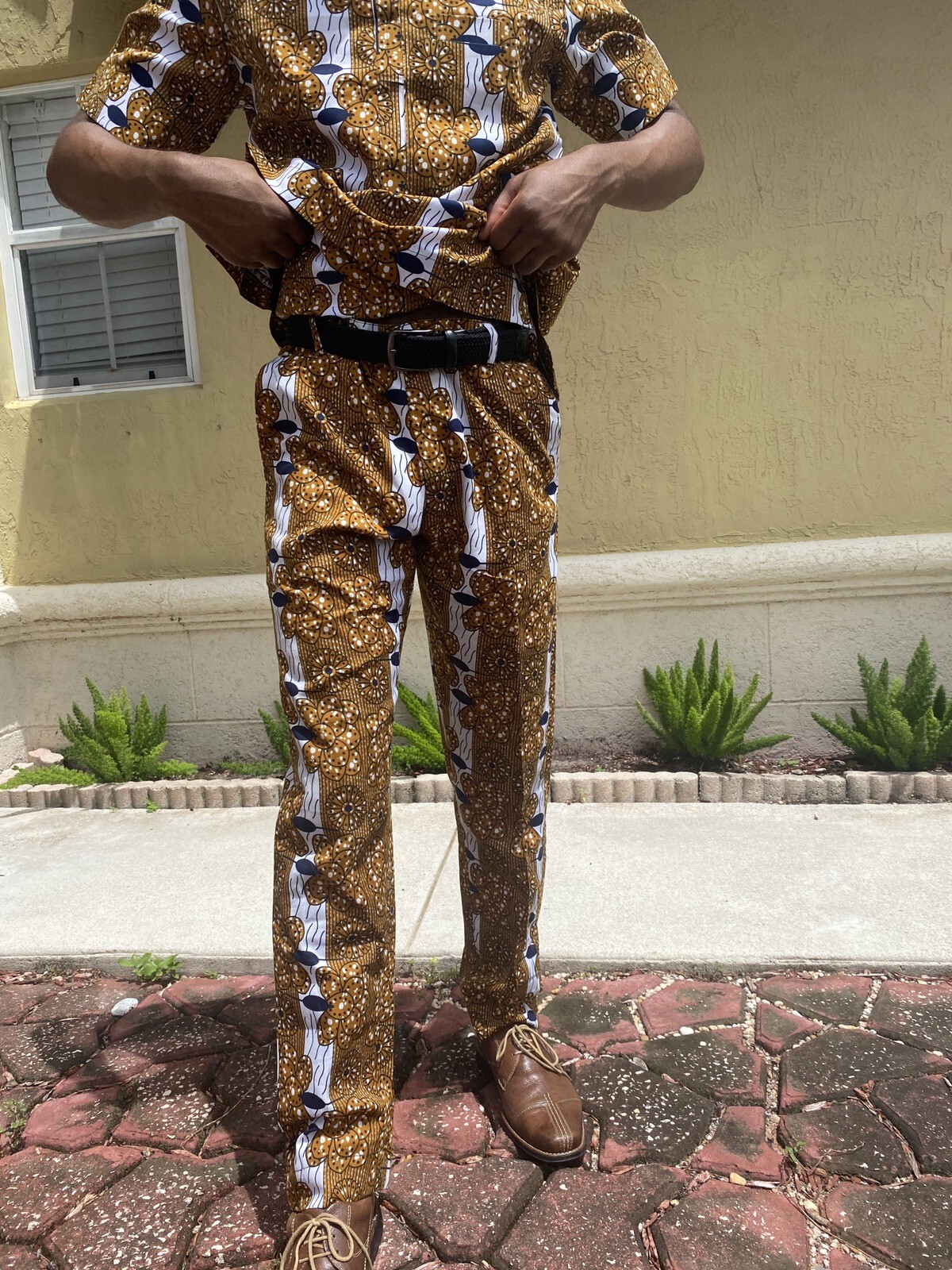 AFRICAN/NIGERIAN MEN'S ANKARA COTTON PRINT SENATOR STYLE TOP PANT SKINNY MEDIUM