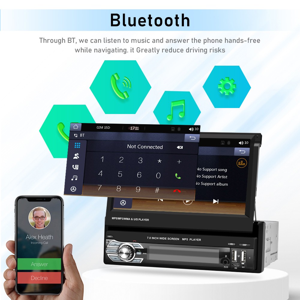 7 Single 1 DIN Car Stereo Flip Out Touch Screen Radio Bluetooth MP5 Player USB