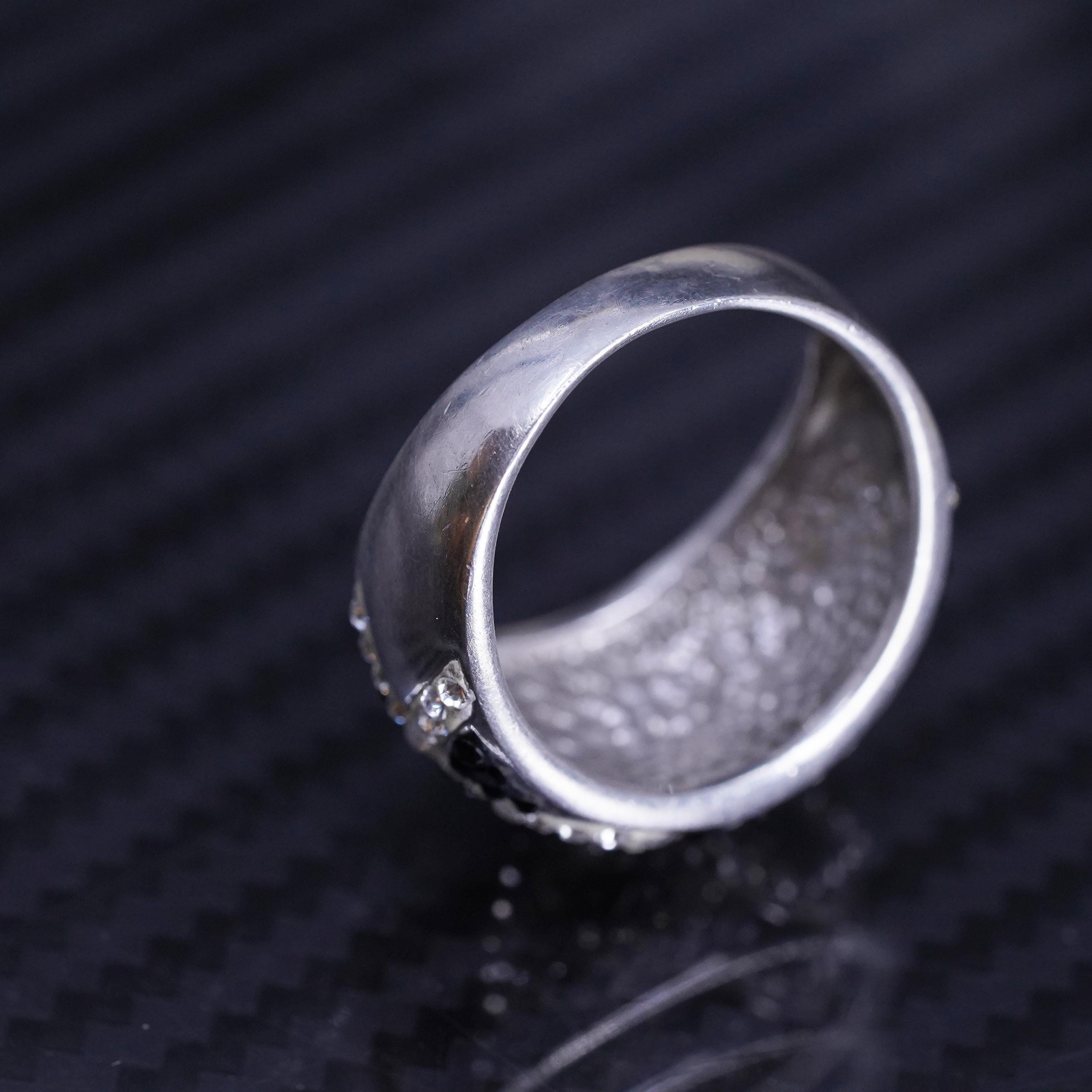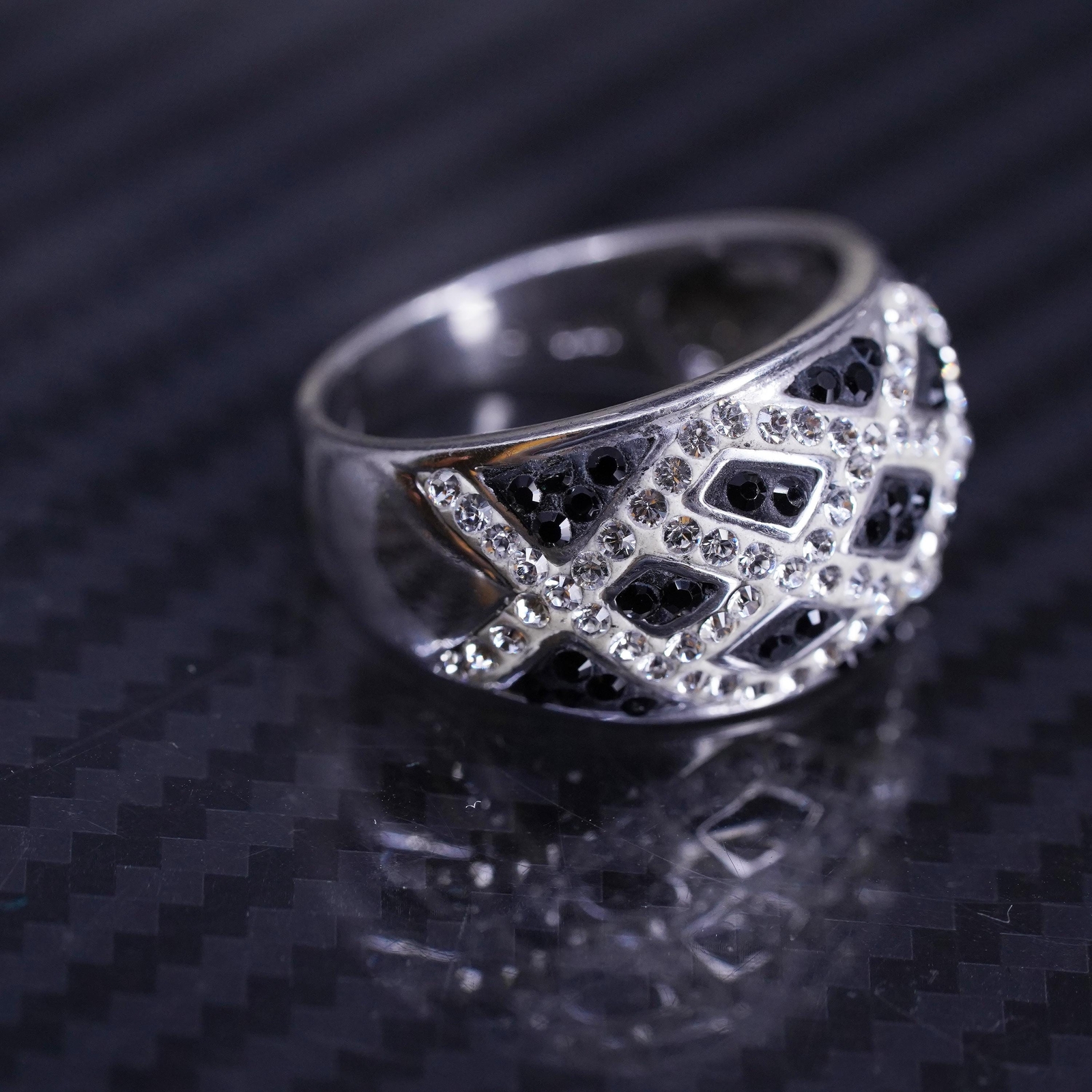 Size 7.25, vintage sterling silver 925 cocktail band ring with cluster cz