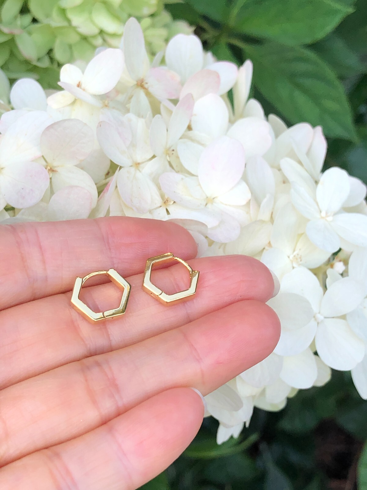 Plain Gold Hexagon Huggie Hoop Earrings 925 Sterling Silver 12.5mm x1.5mm TINY