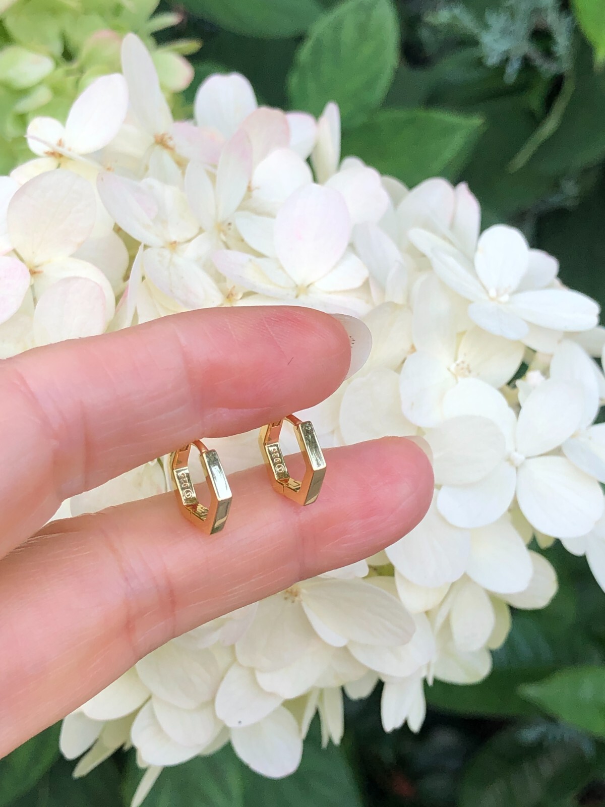 как выглядит Plain Gold Hexagon Huggie Hoop Earrings 925 Sterling Silver 12.5mm x1.5mm TINY фото