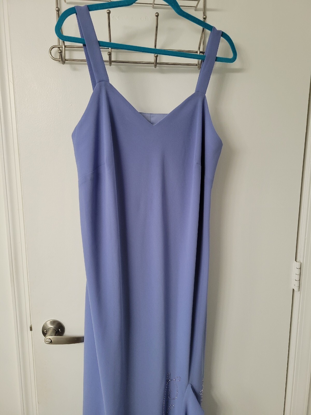 как выглядит R M Richards Periwinkle Bridal Beaded Chiffon Mermaidcore Evening Gown SZ XL фото