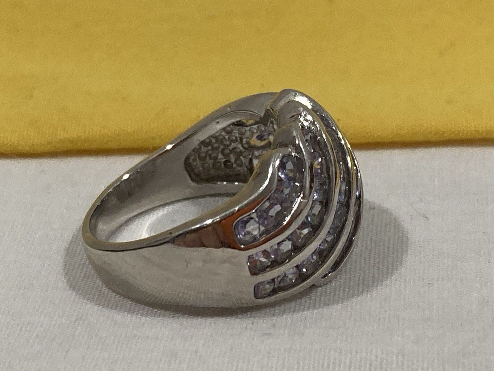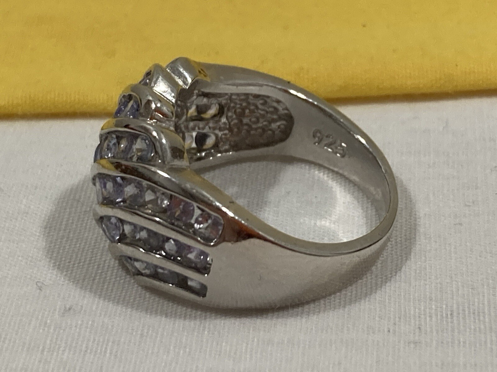 как выглядит Vintage 925 SIGNED Sterling Silver 925 Purple CZ CLUSTER COCKTAIL RING SIZE 7.25 фото