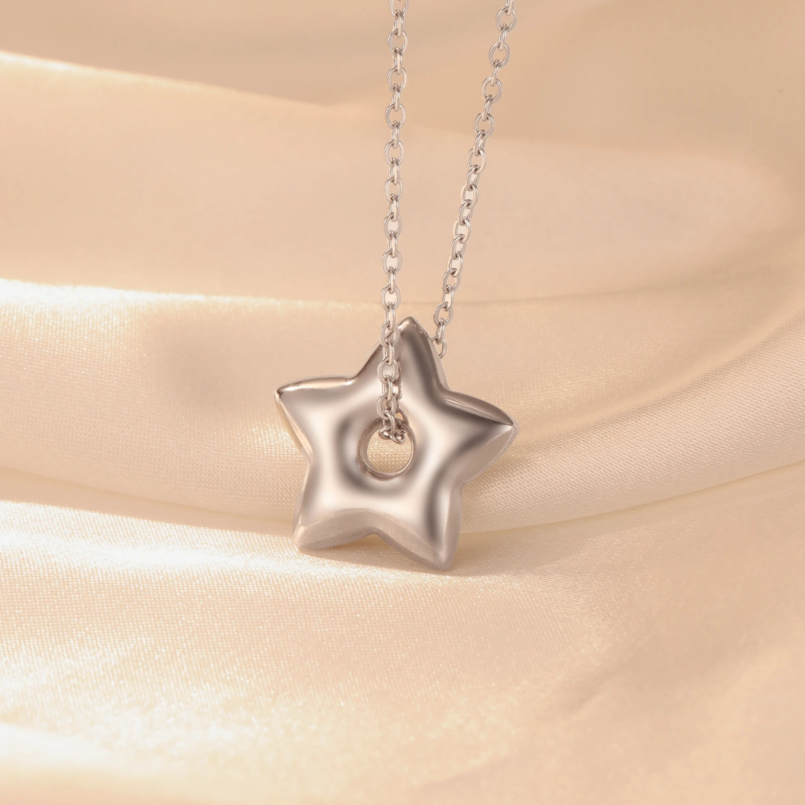 Teamer Cute Chunky Star Pendant Necklace Stainless Steel Silver Color Jewelry