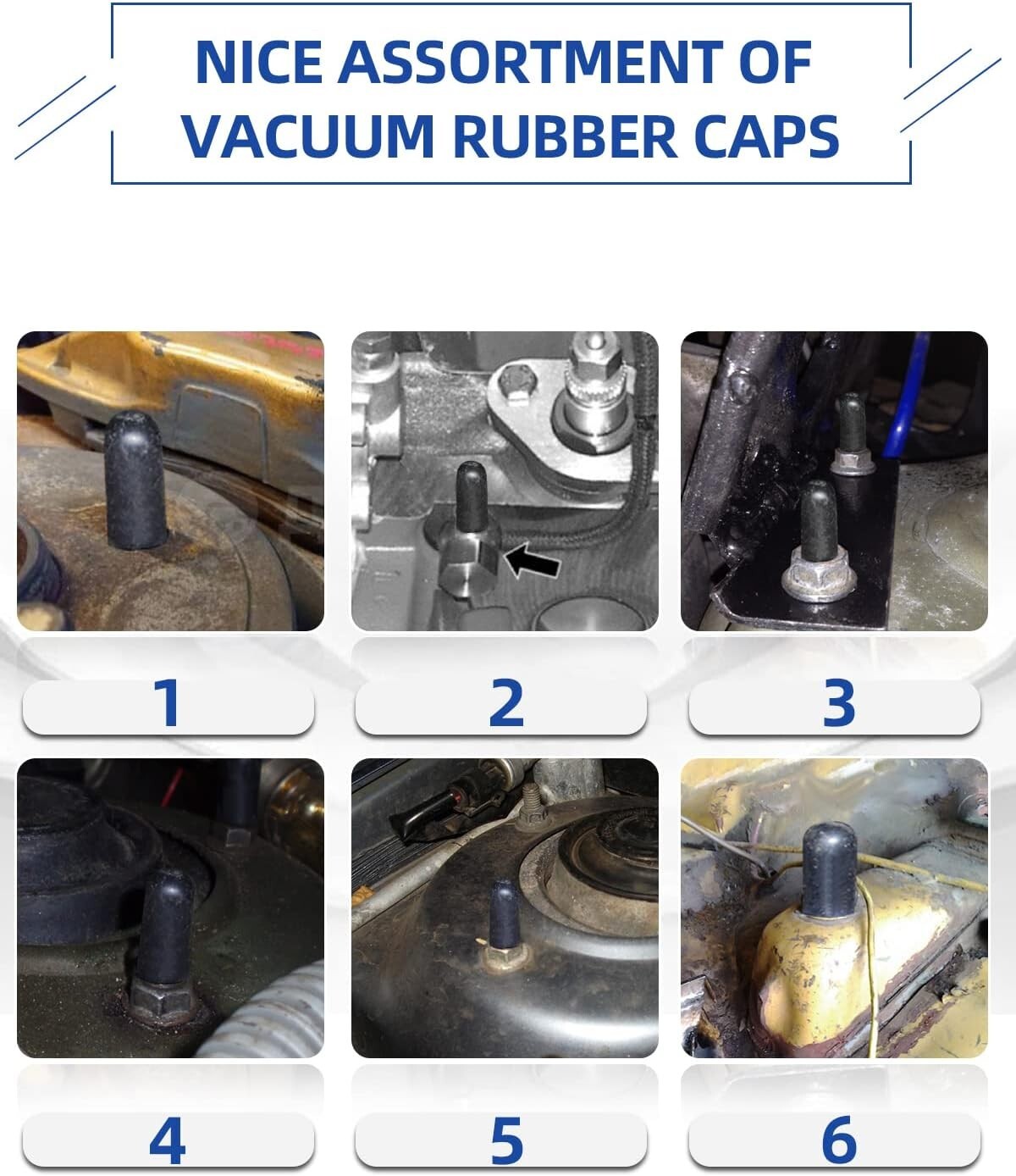 как выглядит 100 Pcs CARBURETOR VACUUM RUBBER CAP PLUG ASSORTMENT KIT INTAKE VACUUM LINES фото