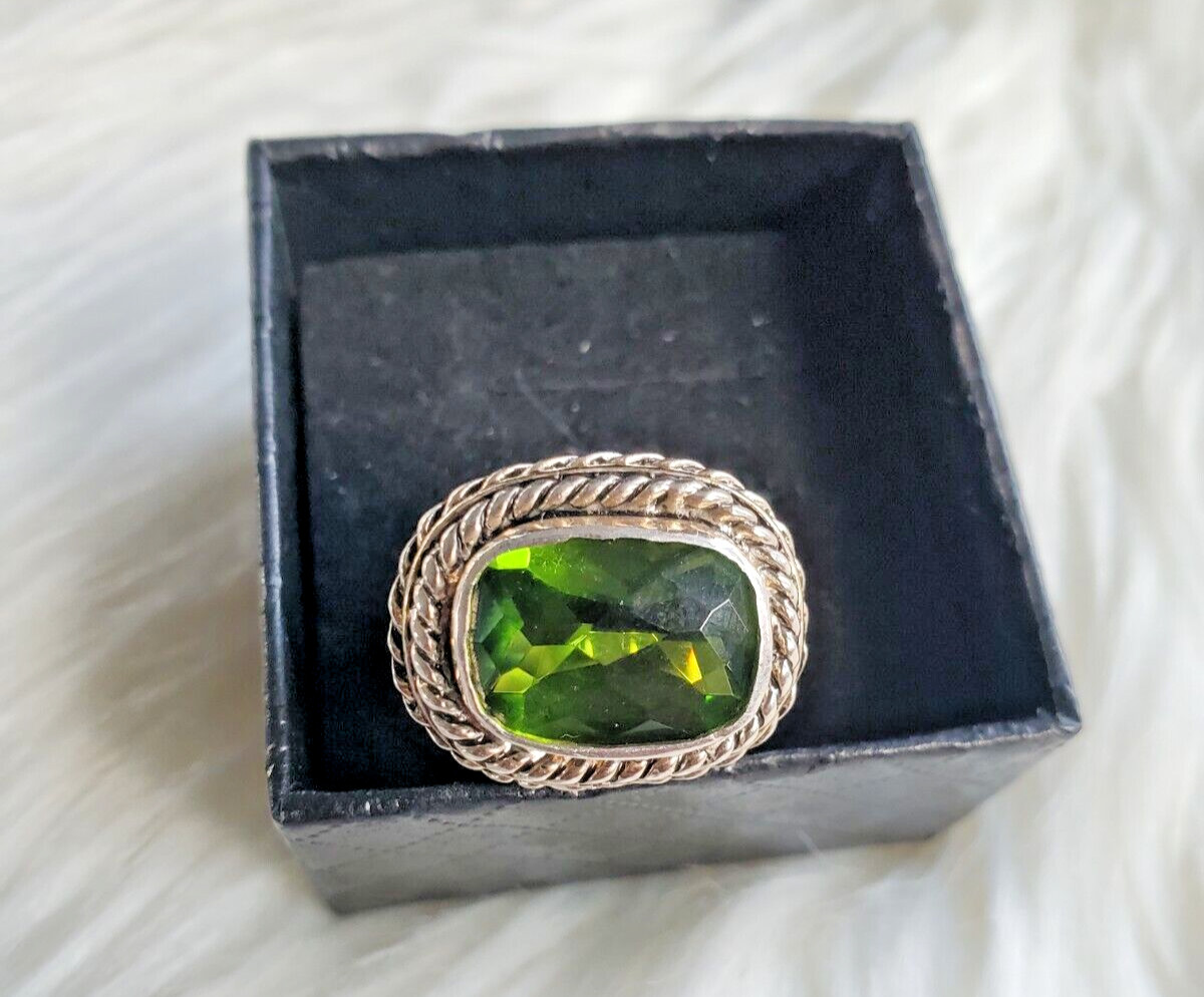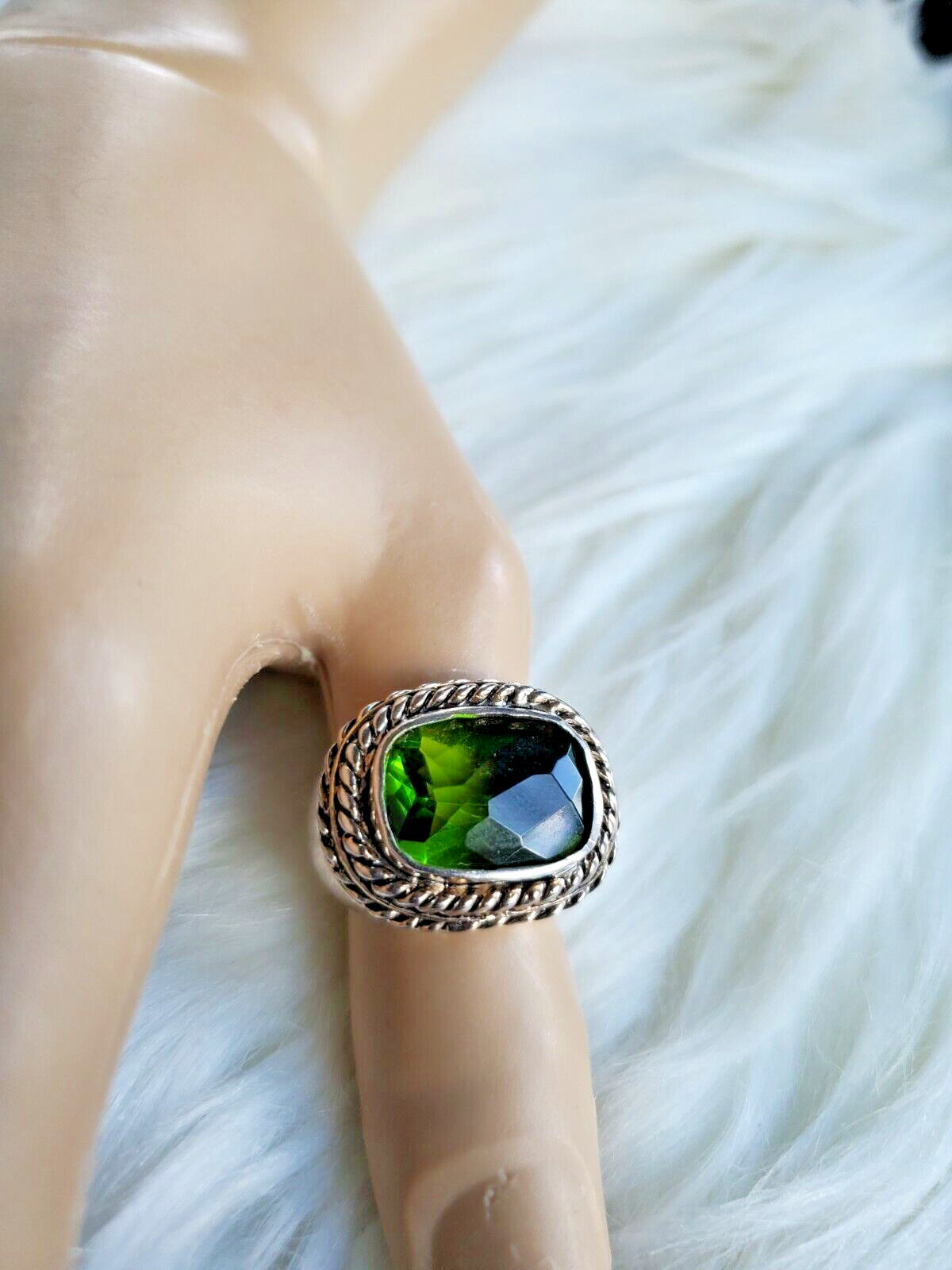 Sterling Silver 925 Green Stone Ring Size 7 Jewelry Accessory Trendy