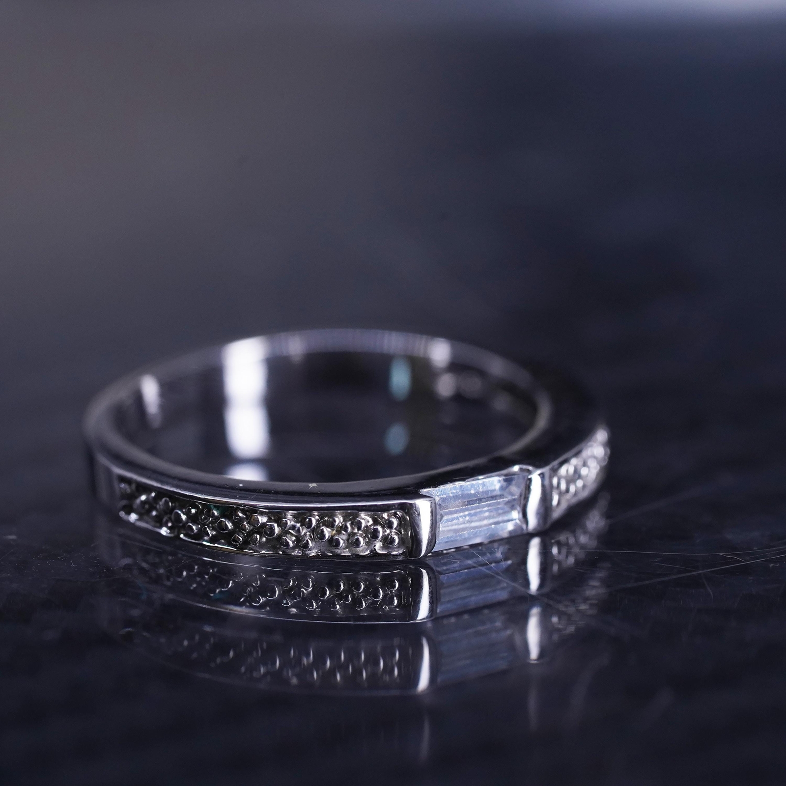 Size 6, vintage sterling silver 925 stackable band ring with cluster cz