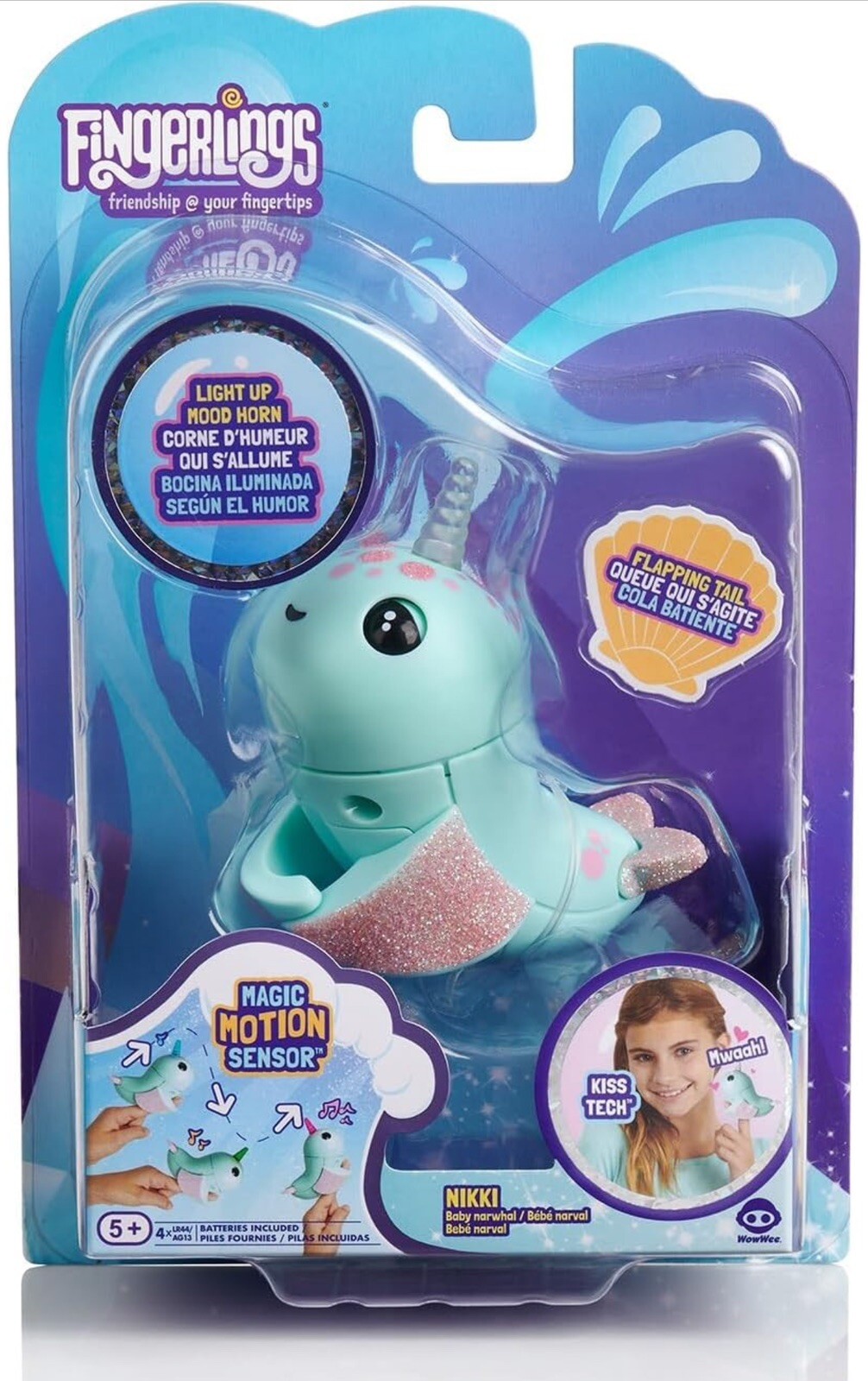 New WowWee Interactive Fingerlings Nikki the Baby Narwhal Motion Sensor Light Up