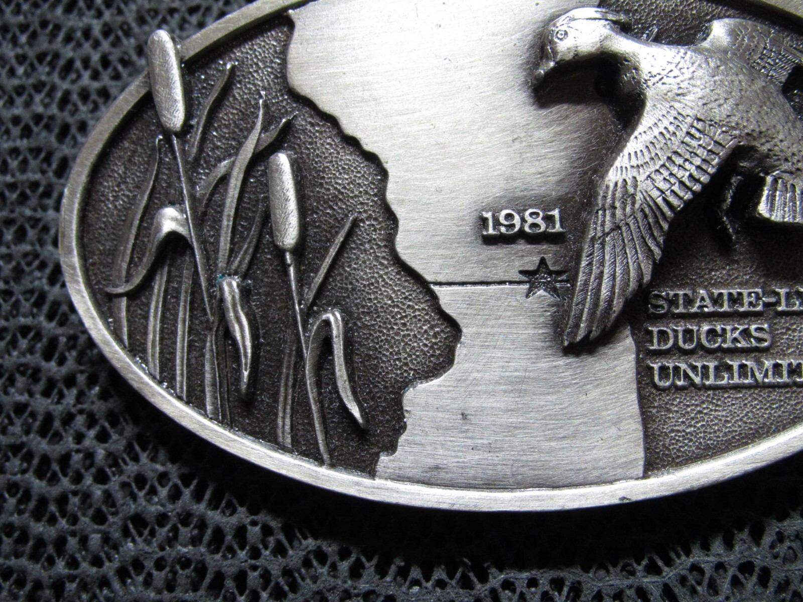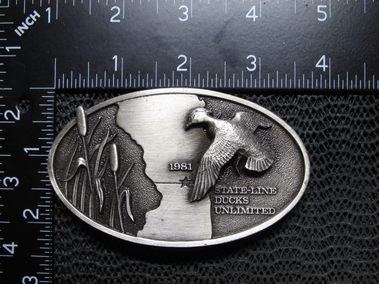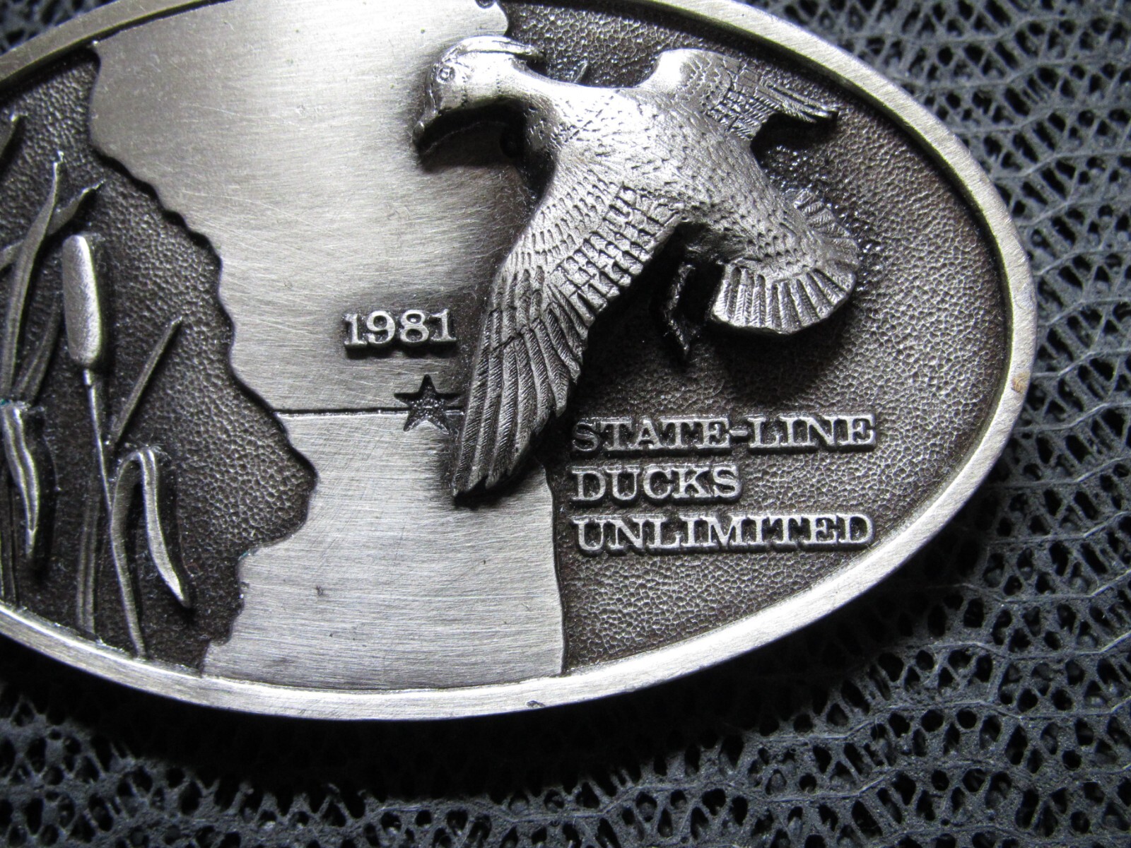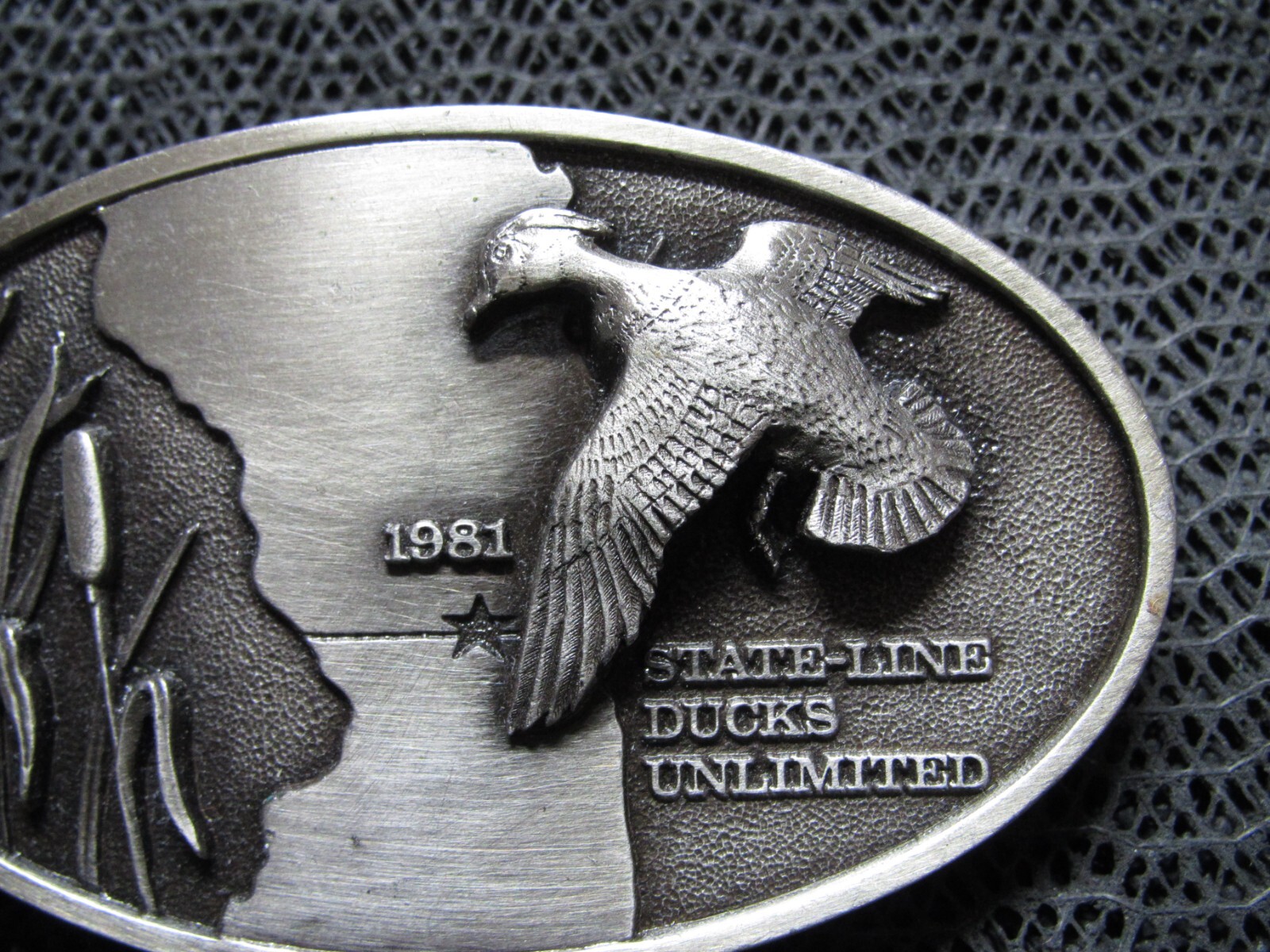 1981 DUCKS UNLIMITED STATE LINE MALLARD BELT BUCKLE VINTAGE RARE BERGAMOT US