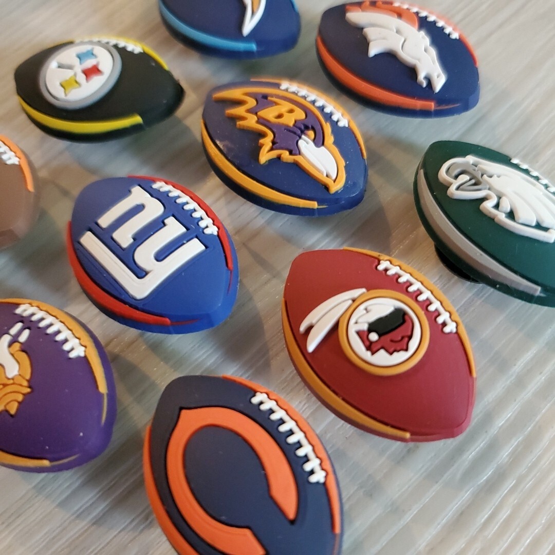 как выглядит 10 NFL Mixed Shoe Charms Lot Jibbitz Football Team Croc Charms Steelers Broncos фото