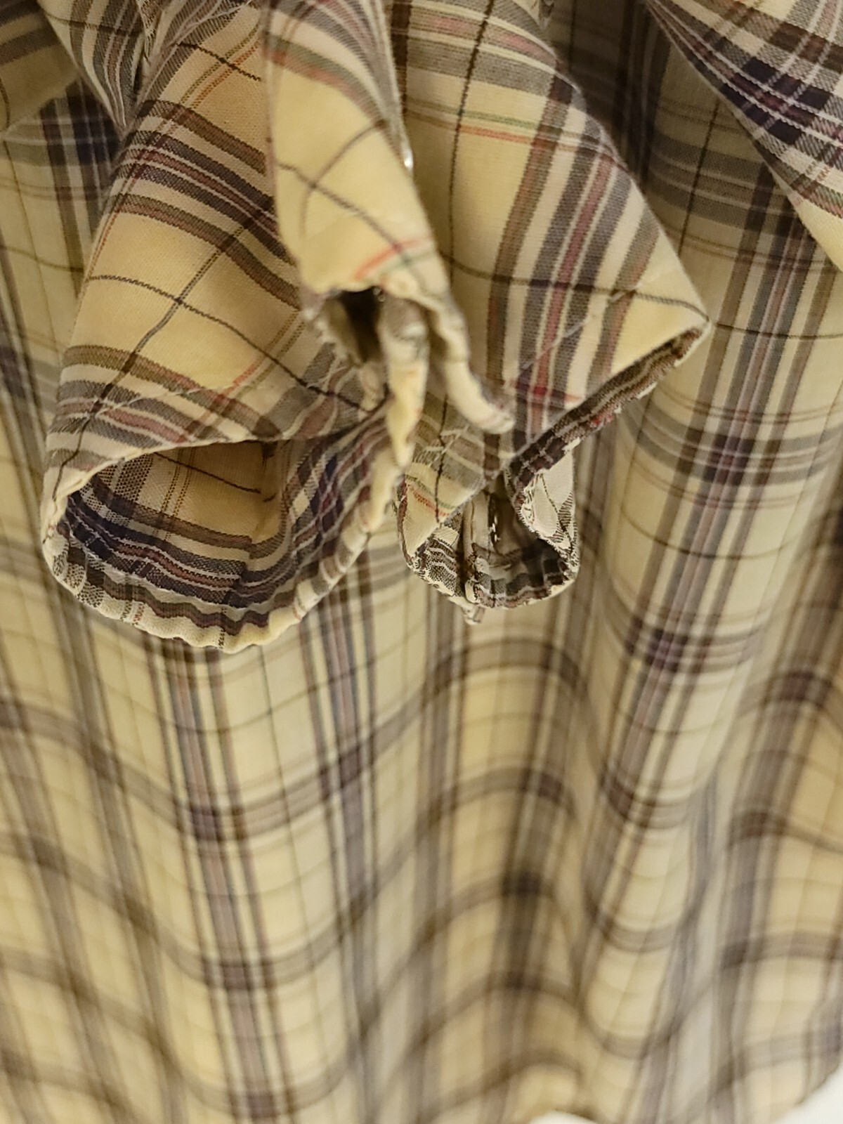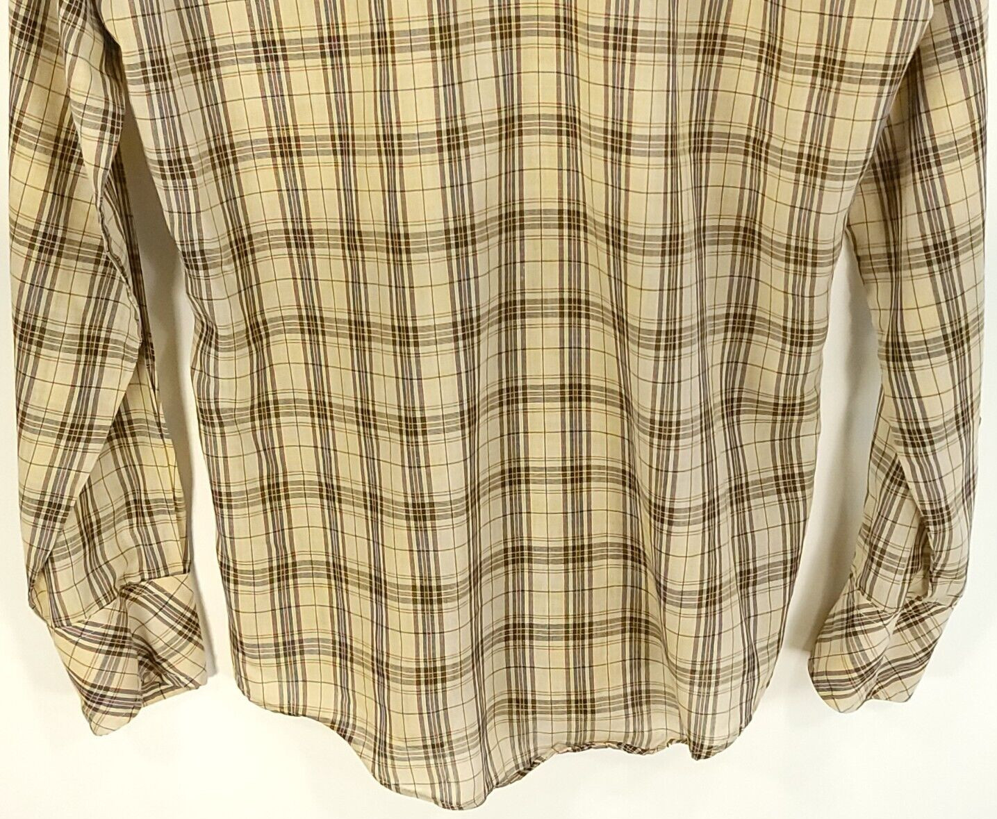 как выглядит Vtg JcPenney Shirt Mens 15 1/2 Western Cowboy Snap Front Tan Navy Blue Plaid 70s фото