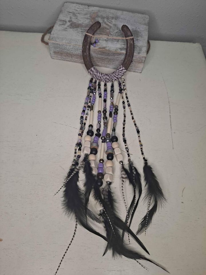 как выглядит Rustic Bead Feather Horseshoe Wall Hang фото