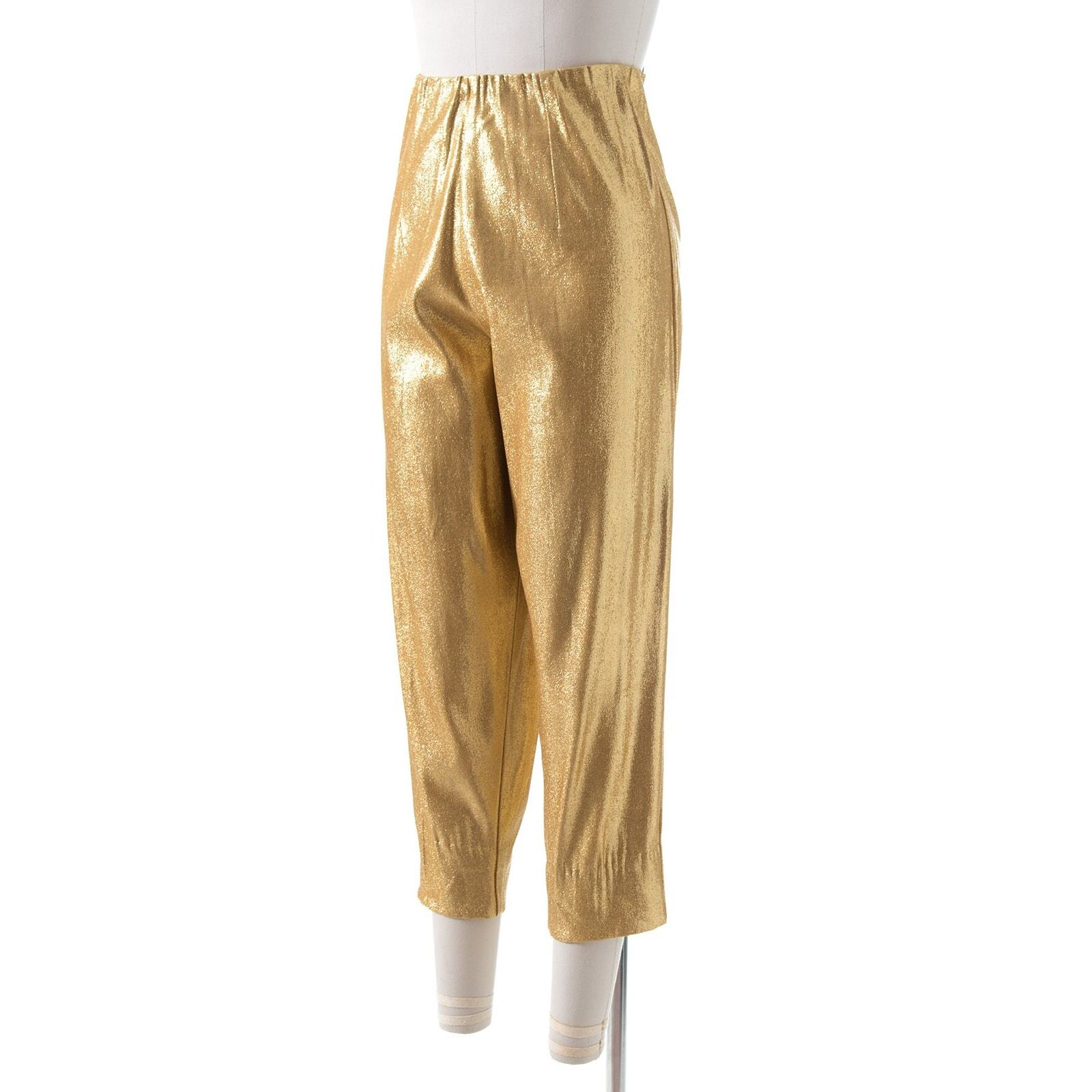 как выглядит Vintage 1950s Cigarette Pants 50s Metallic Gold Lam High Waist Pin Up Trousers фото