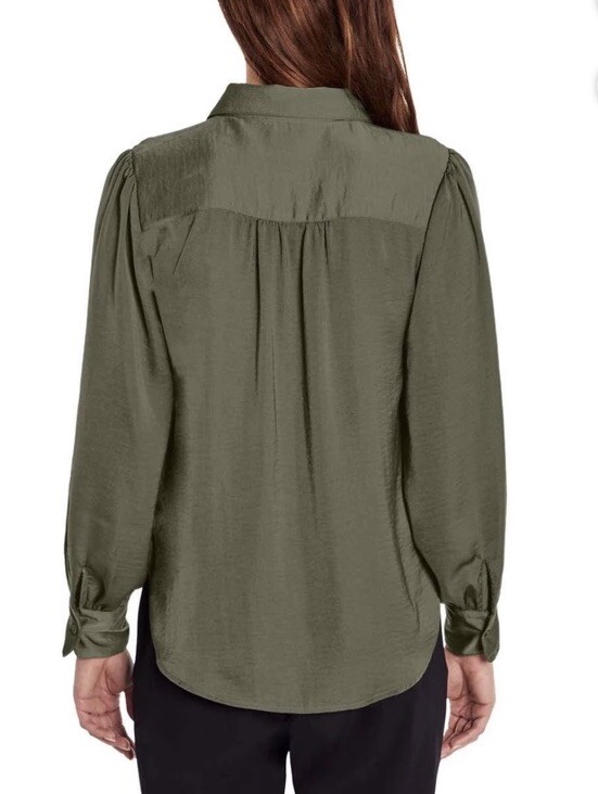как выглядит NEW Banana Republic Relaxed Long Sleeve Satin Pullover Blouse - Green Size XL фото
