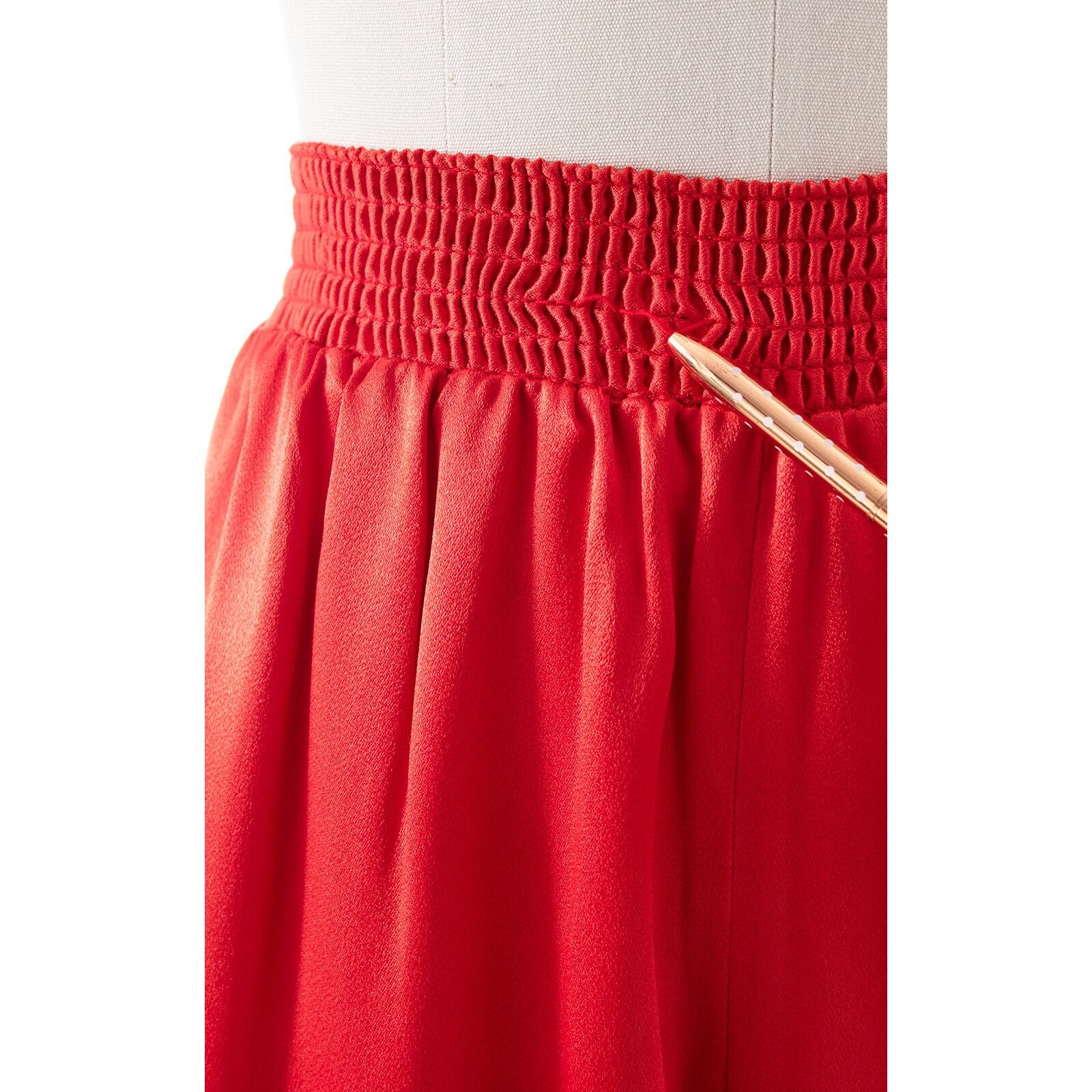 как выглядит Vintage 1970s Dress Pants 70s Red Satin High Waist Wide Leg Studio 54 Trousers фото