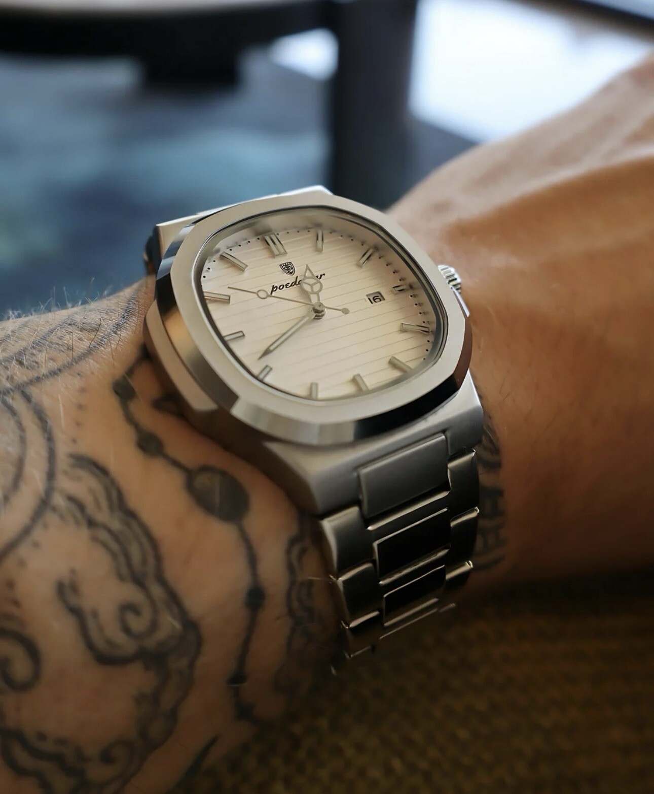 как выглядит "POEDAGAR Luxury Waterproof Business Mens Watch - Luminous Date Stainless Steel фото