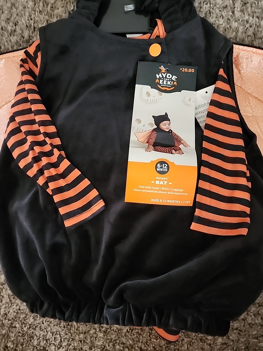как выглядит Bat Hooded Plush Pullover Halloween Costume 6-12m Hyde Eek Soft Warm 2pc фото