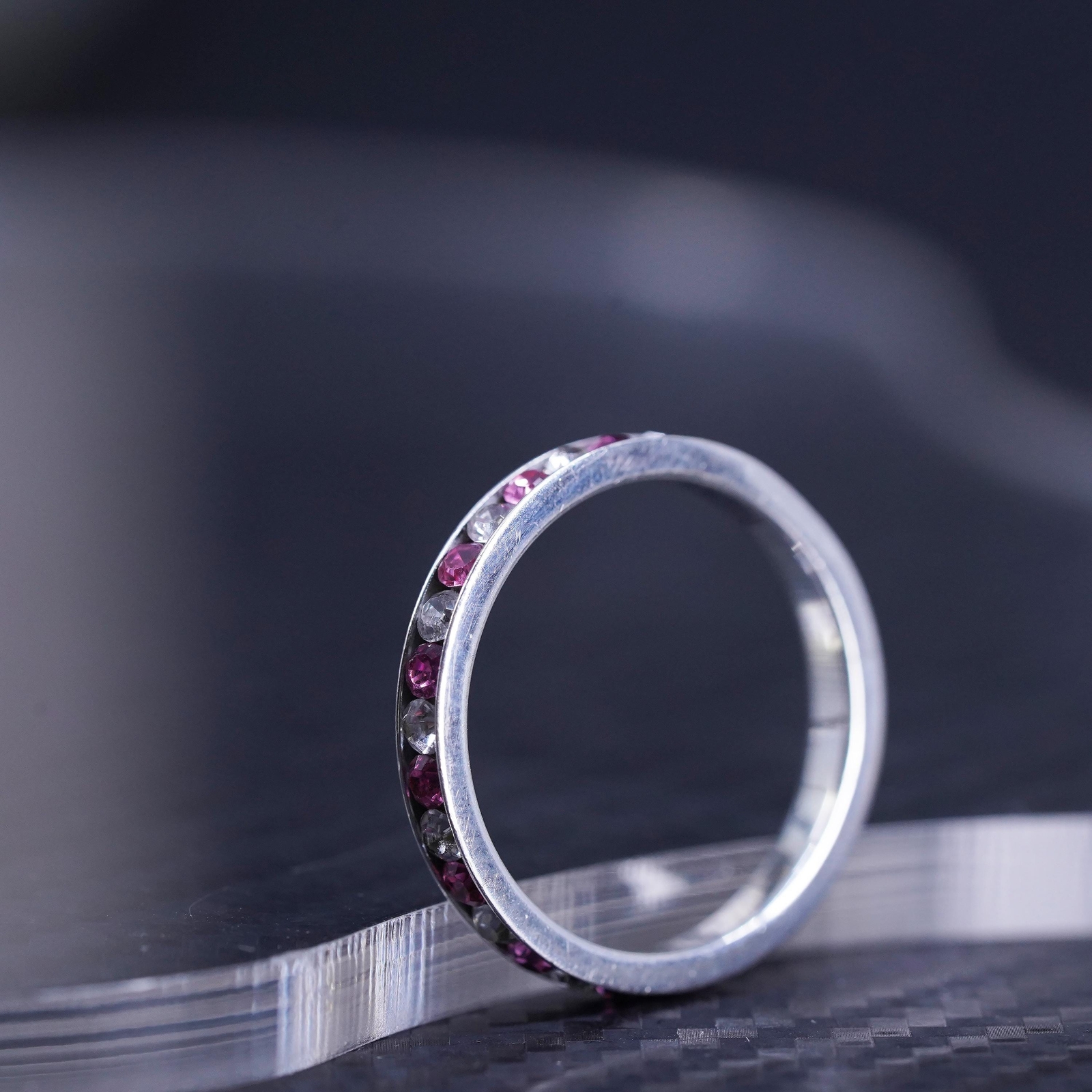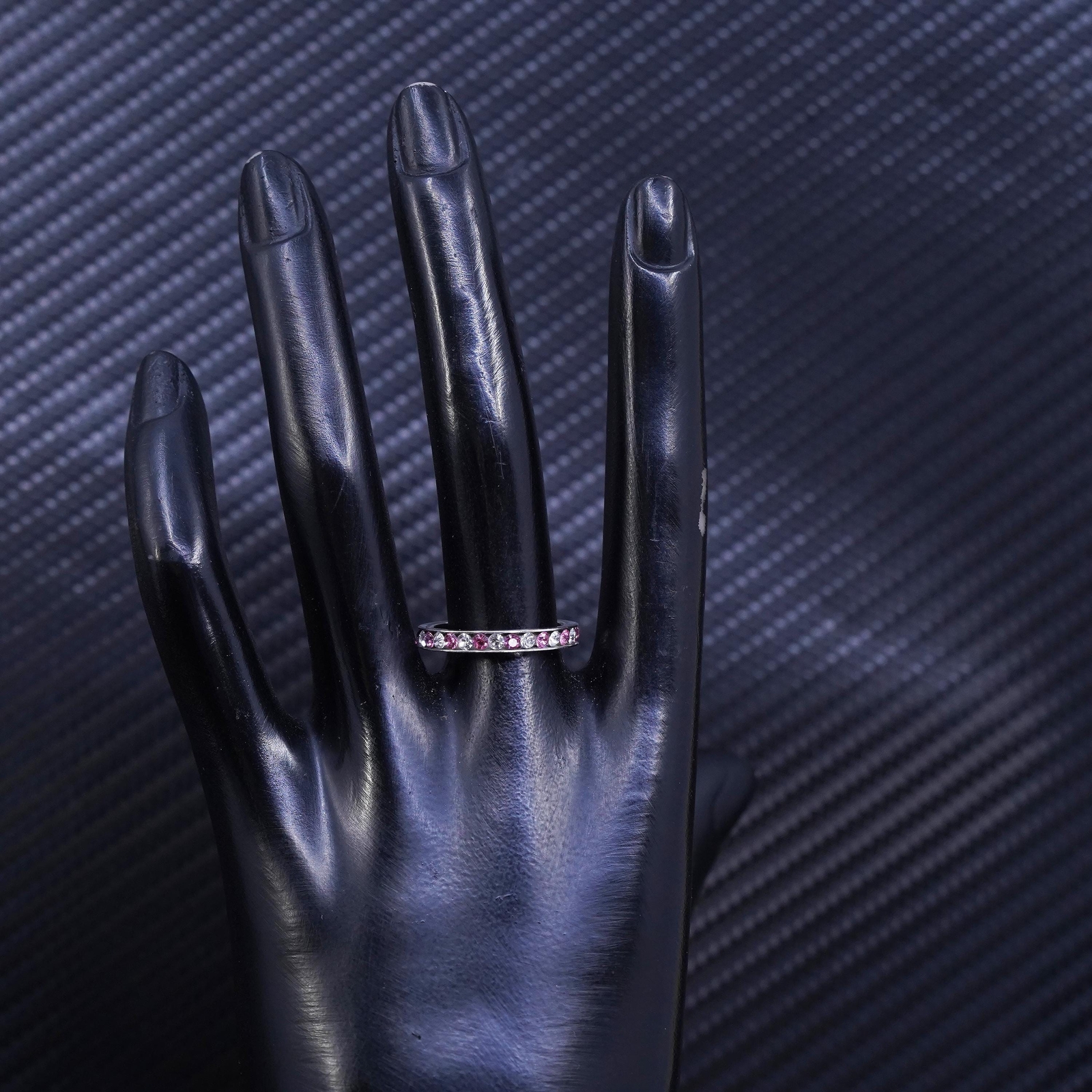 Size 8, vintage sterling silver 925 stackable band ring with cluster cz