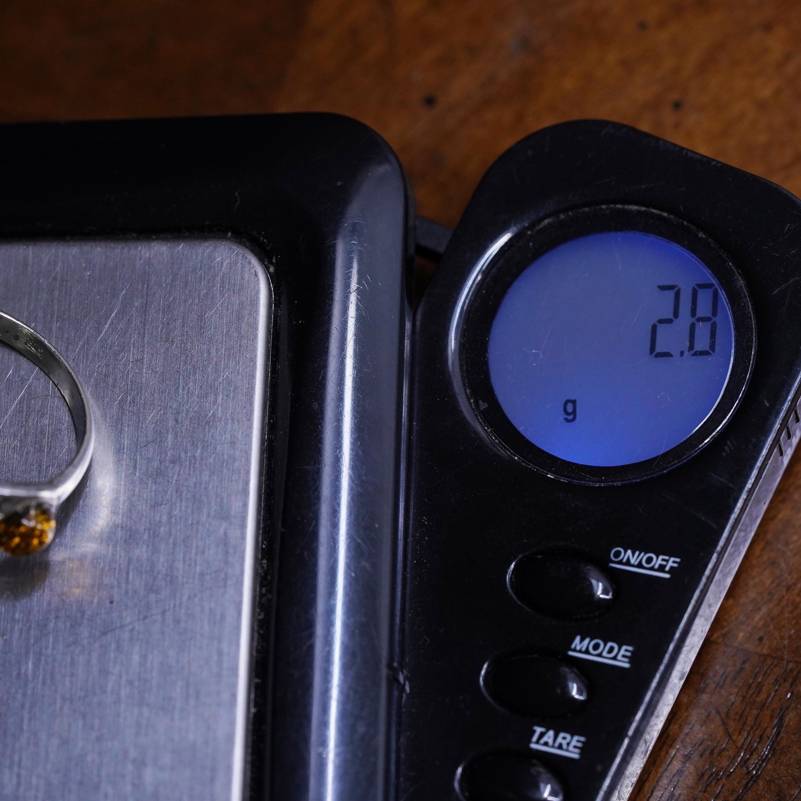 Size 7.5, vintage sterling silver 925 handmade ring with teardrop amber