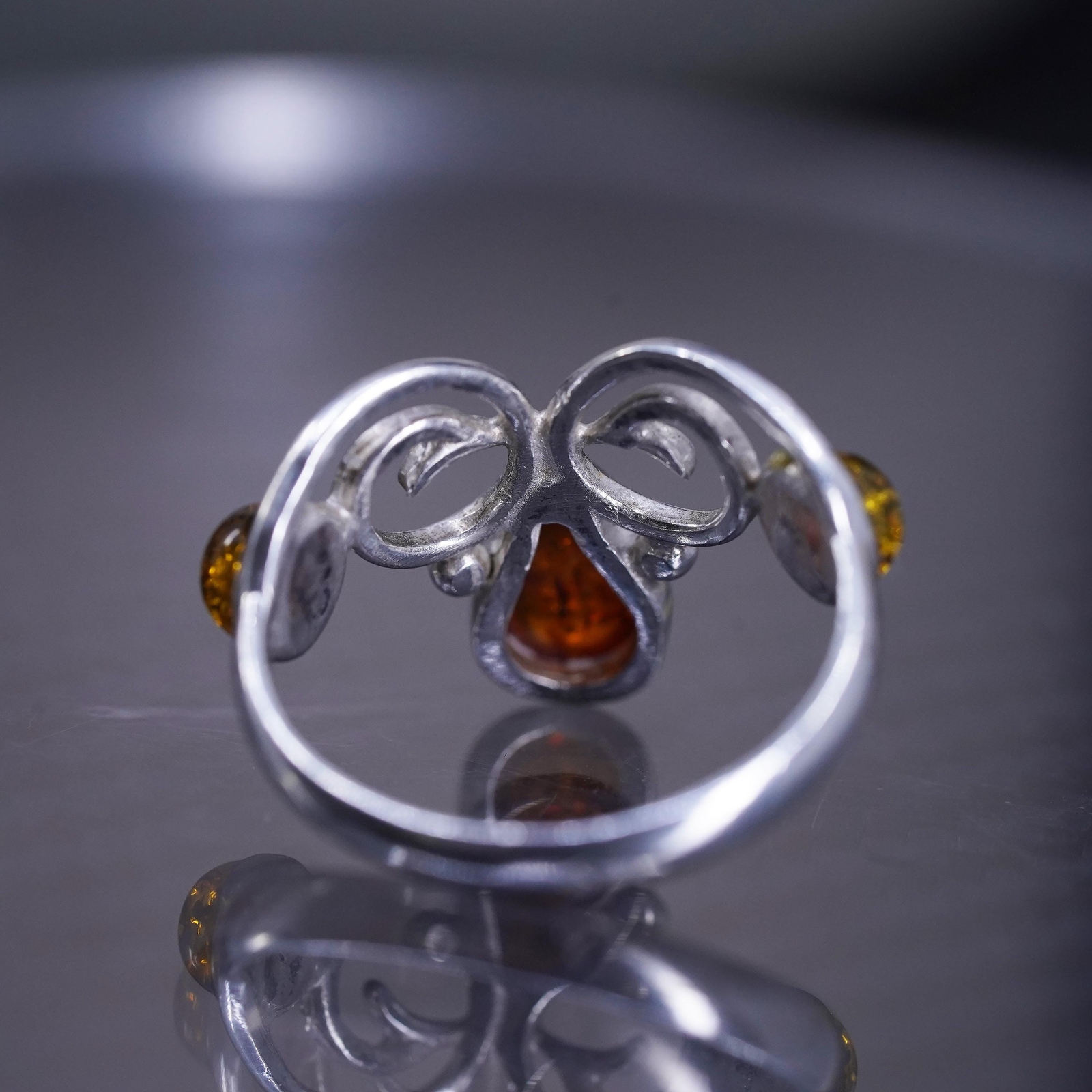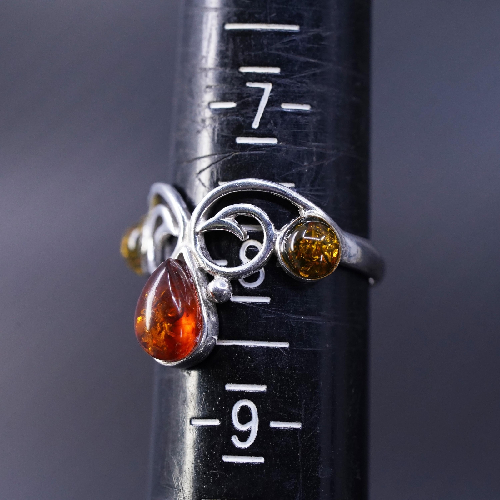 как выглядит Size 7.5, vintage sterling silver 925 handmade ring with teardrop amber фото