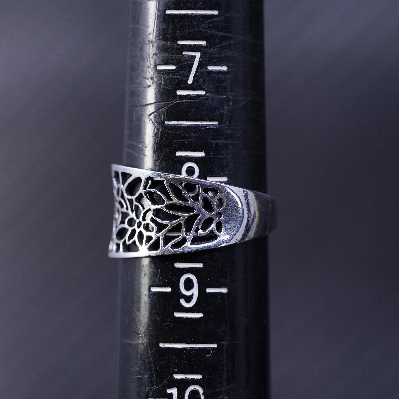 как выглядит Size 8, vintage Sterling silver handmade ring, 925 filigree leaves band фото
