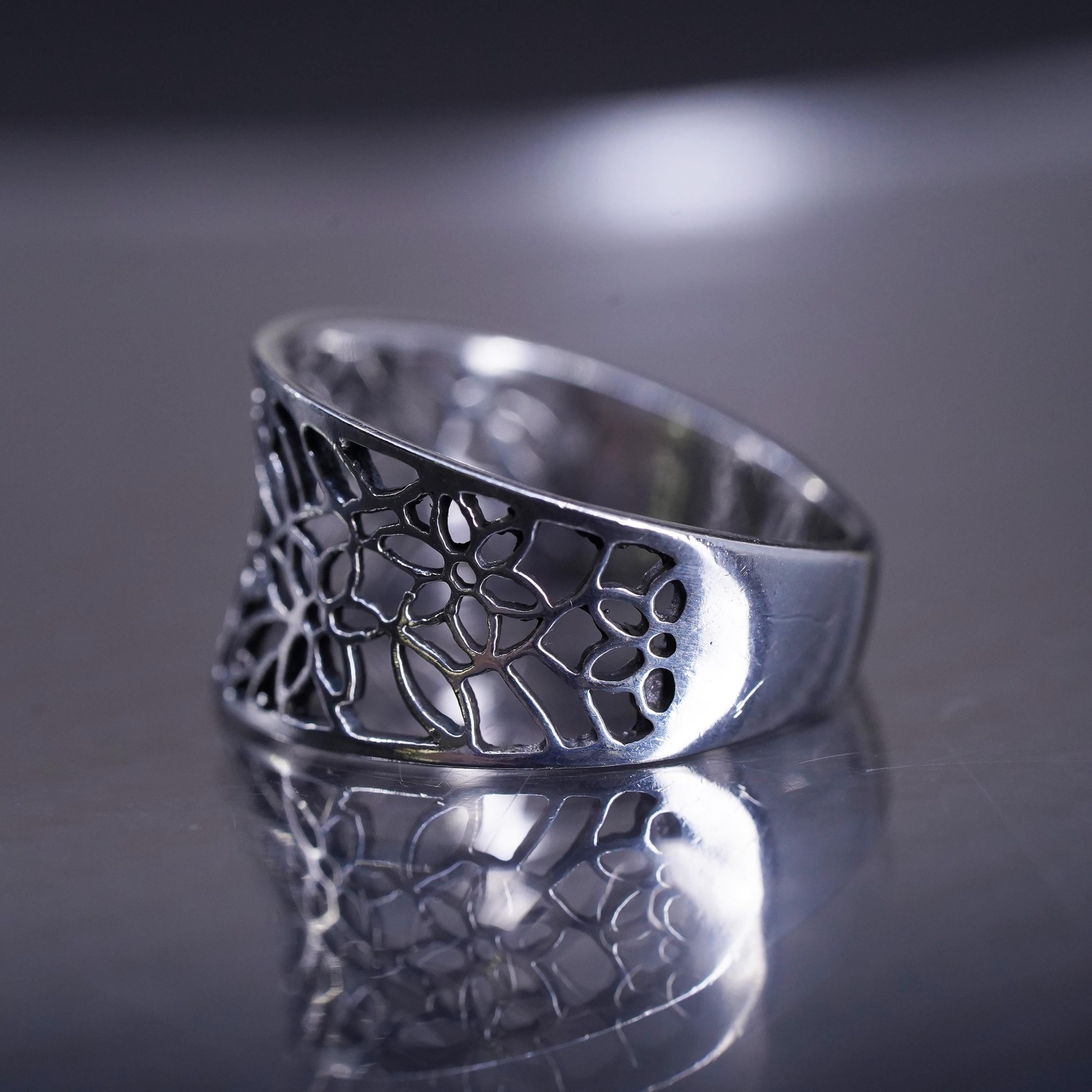 Size 8, vintage Sterling silver handmade ring, 925 filigree leaves band
