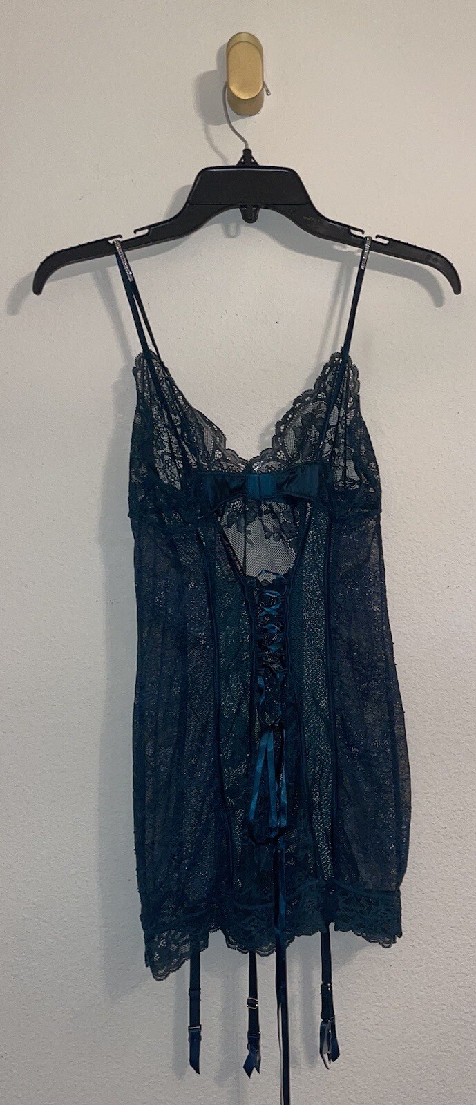 Victorias Secret Lace Lingerie Garter Teddy Lace Up Rhinestone Straps M Medium