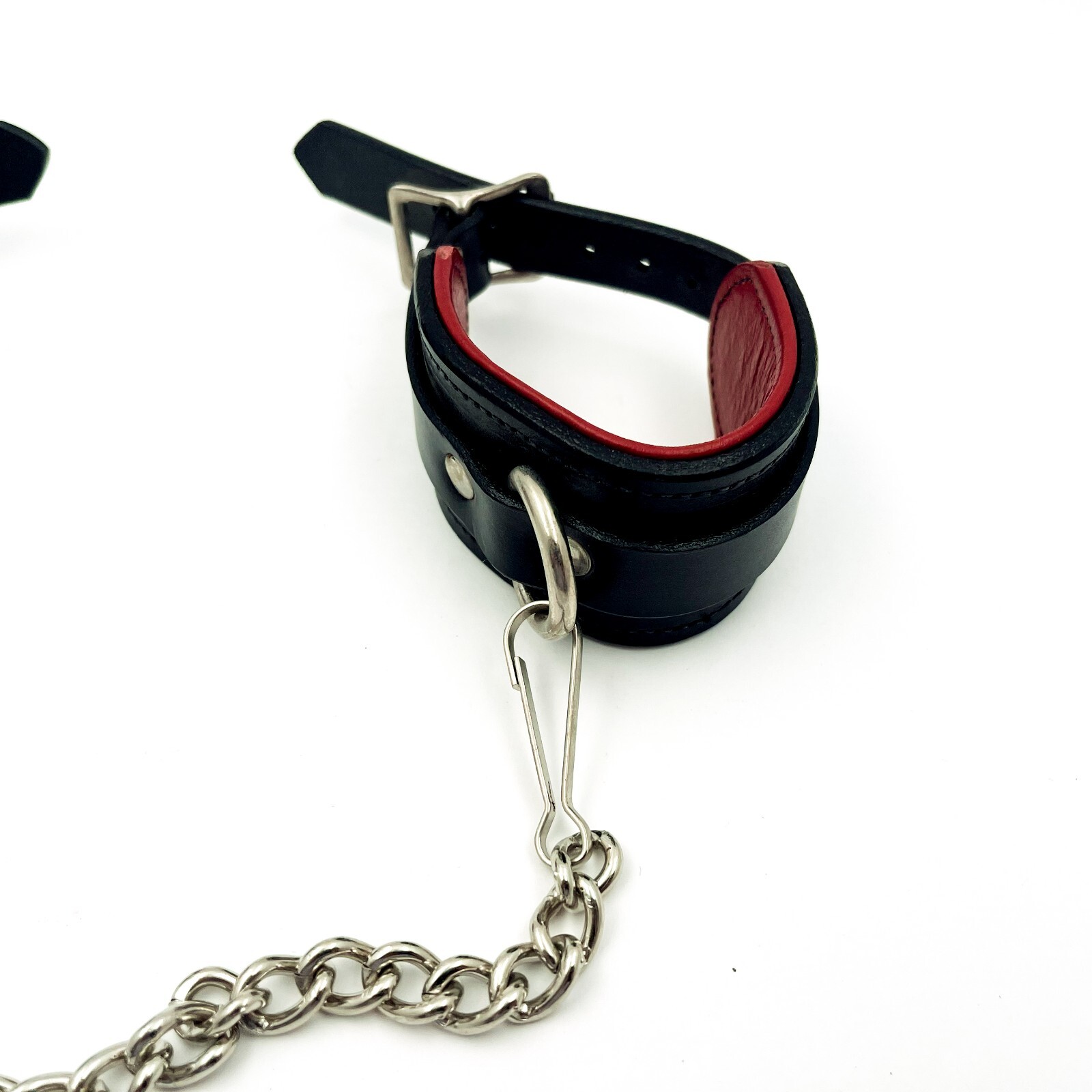 как выглядит Leather Wrist Cuffs Chain - Top-Grain Leather - New Without Tags - Renaissance фото