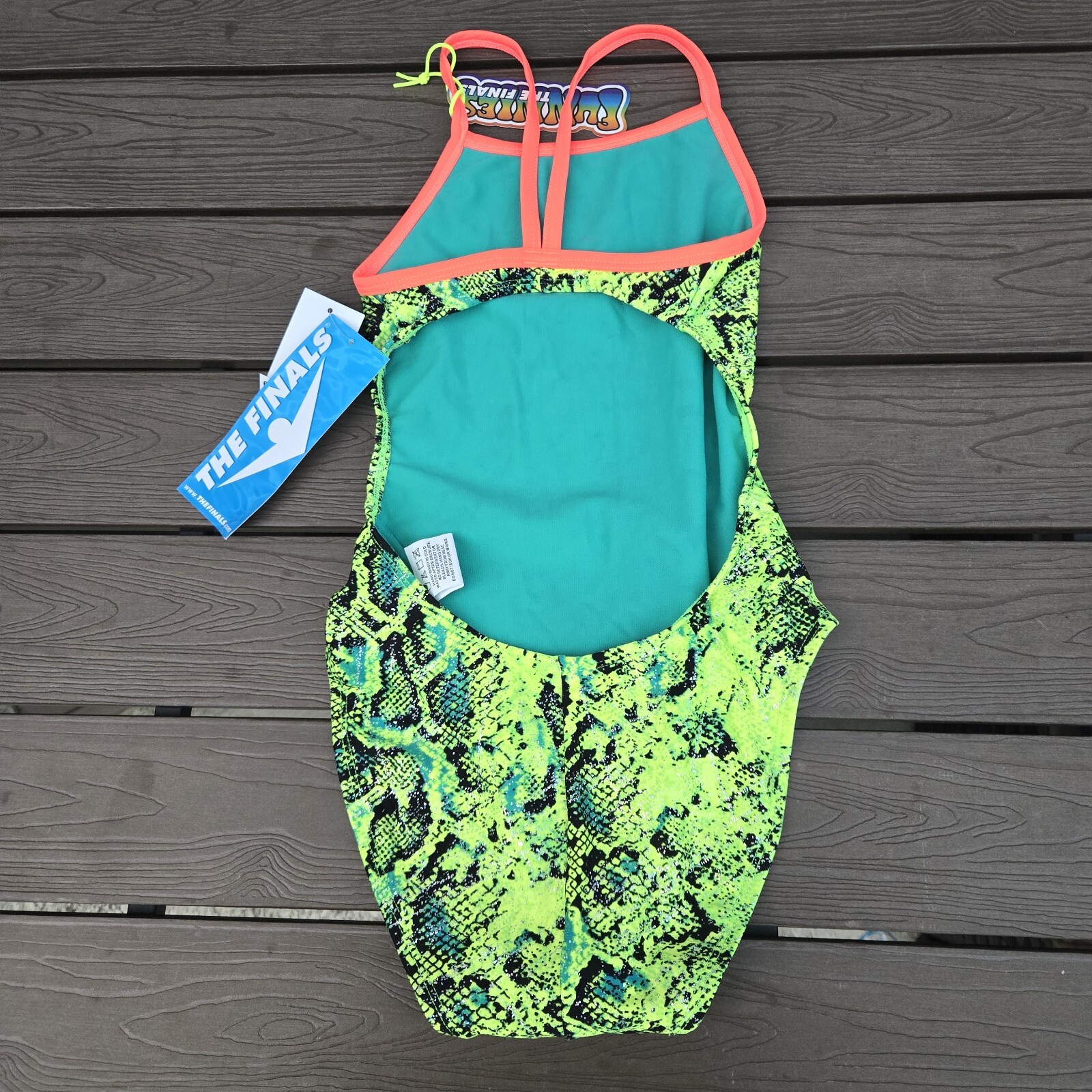 TYR The Finals Boa Foil Wingback Swimsuit Green Youth Girls Green - Size 26 NEW