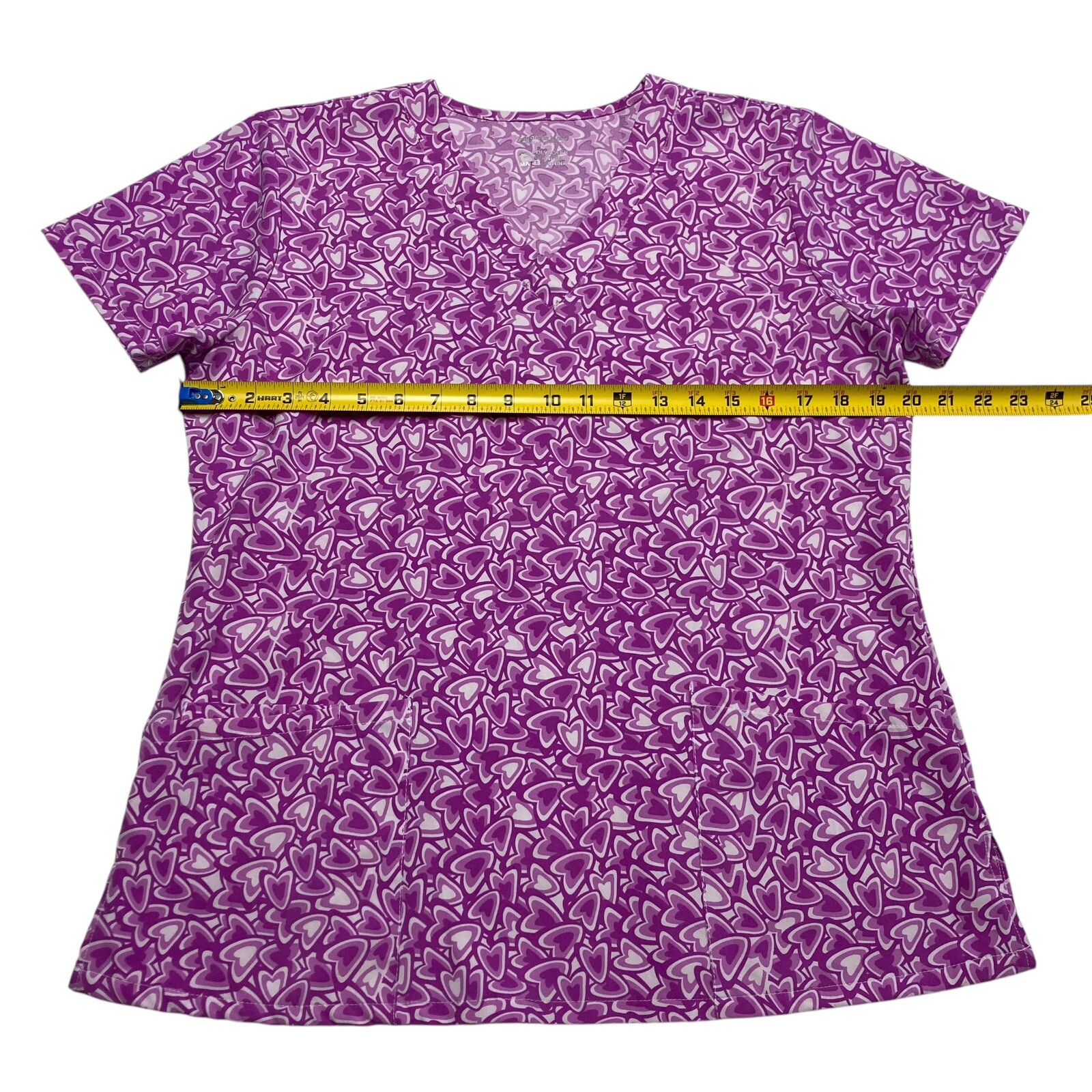 Samantha Mara 4 Way Stretch Purple Hearts Short Sleeve Scrub Top Women s M