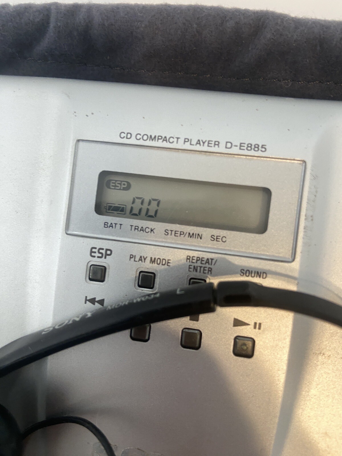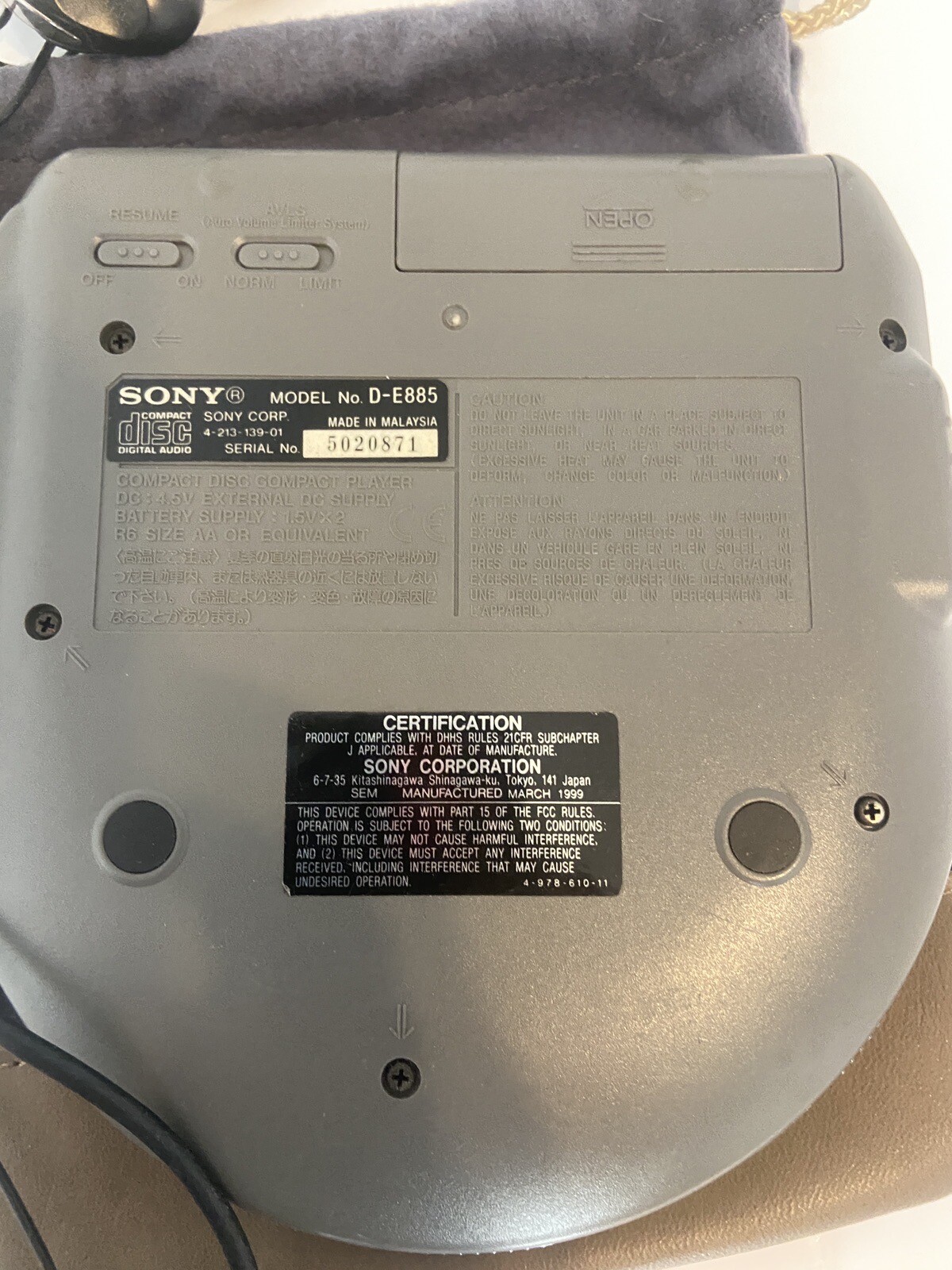 SONY DISCMAN D-E885 Vintage Personal CD Player Set Remote Headphones Case