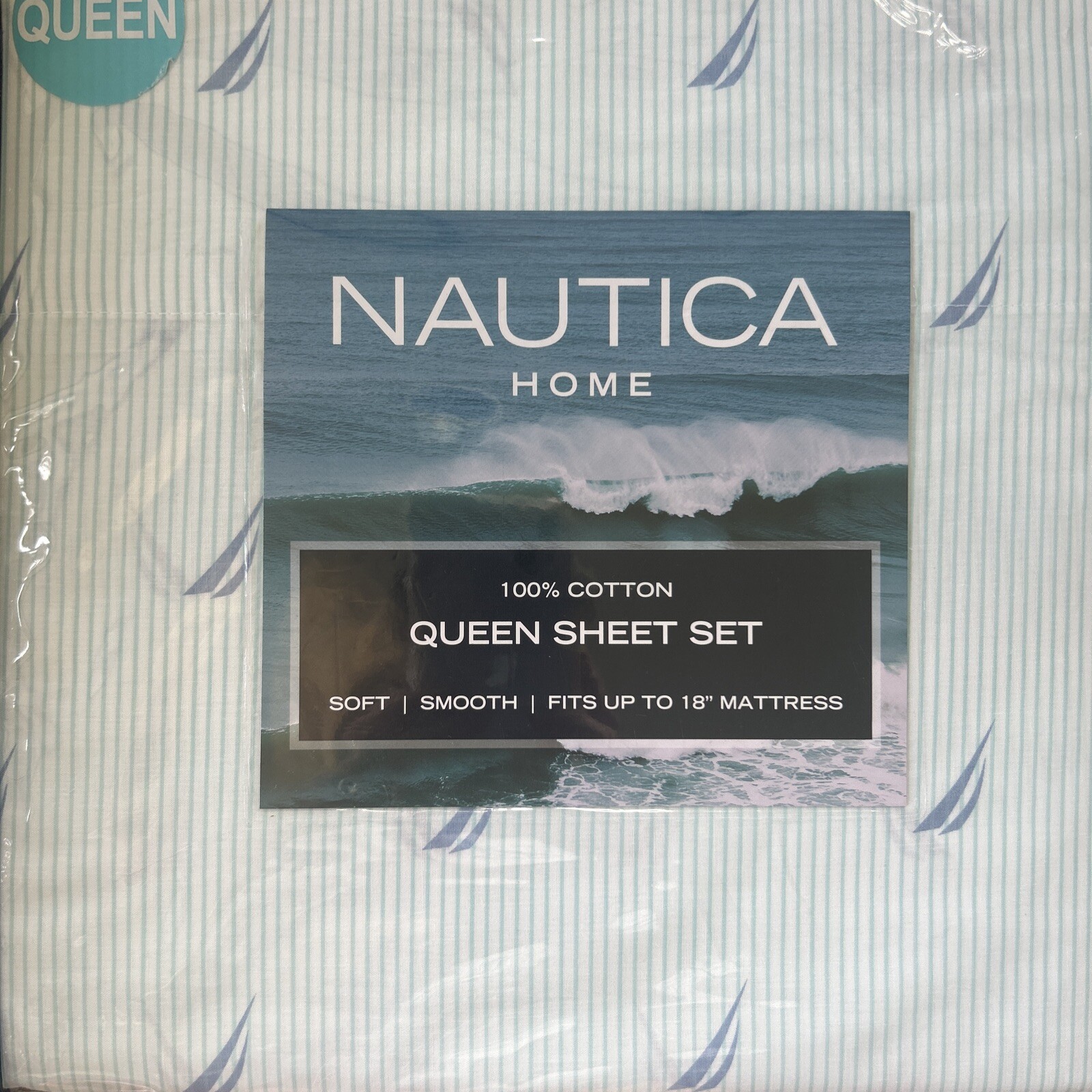 как выглядит Nautica Coastal Beach Boat Stripe Blue Sailboats Aqua QUEEN Sheet Set 4pc фото