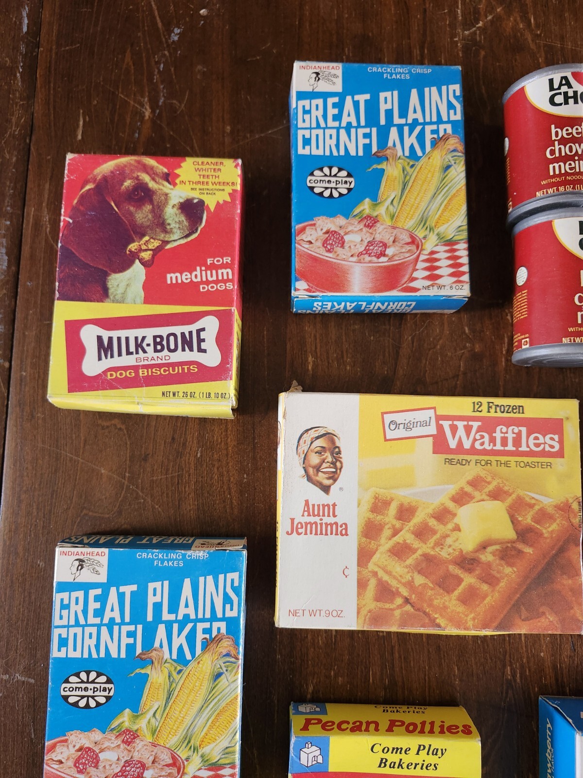 Vintage Pretend Play Kitchen Shopping Grocery Mini Brand Food Boxes Cans Pantry