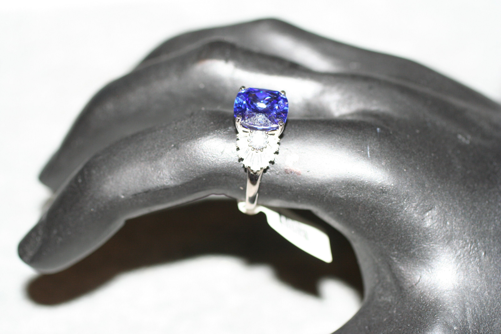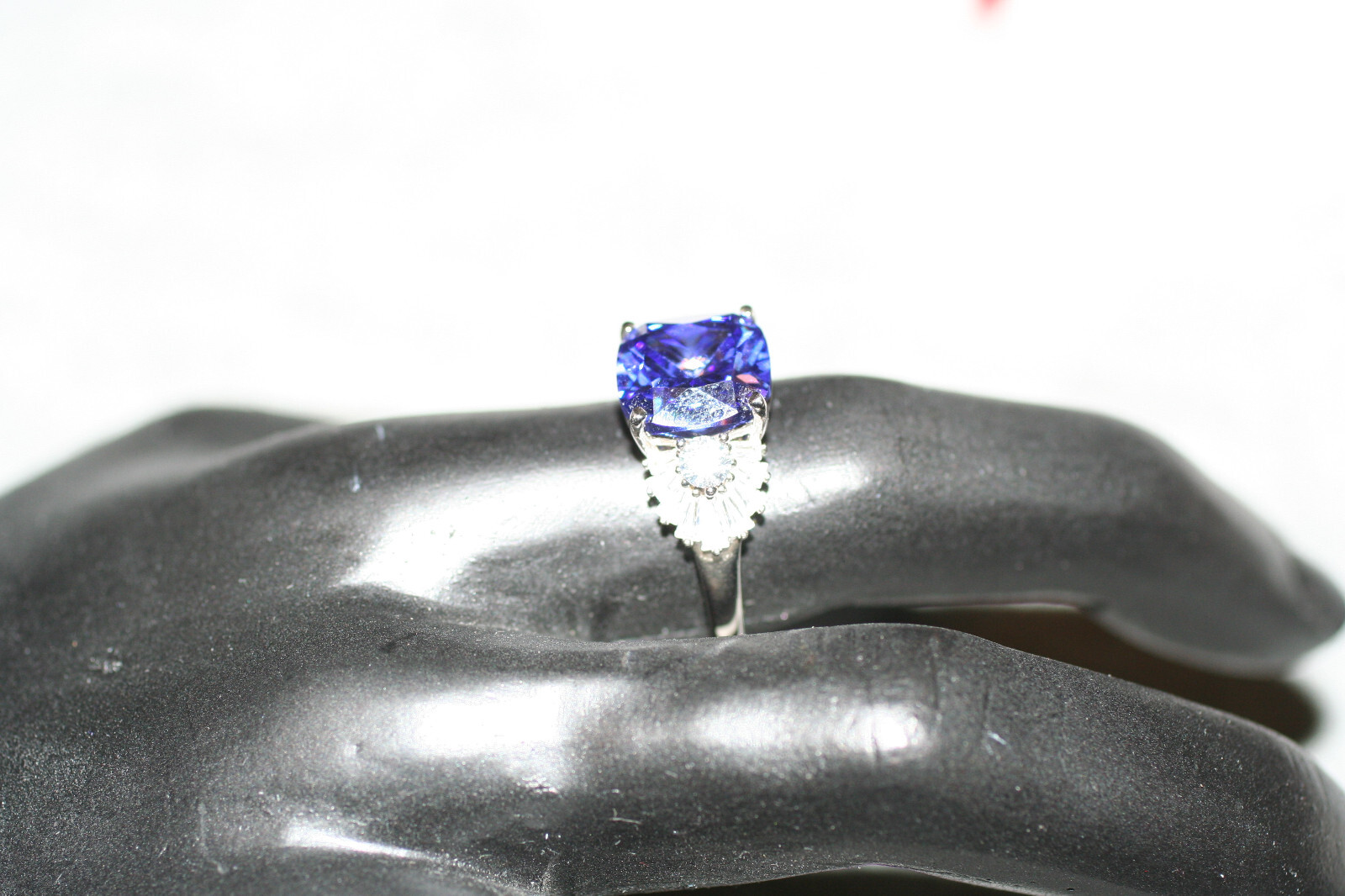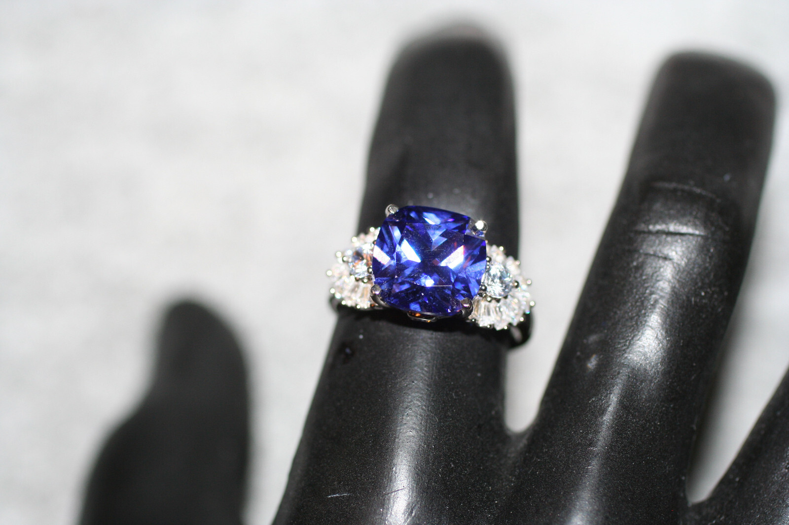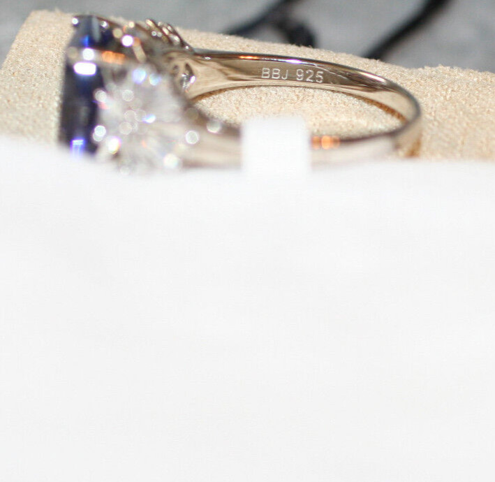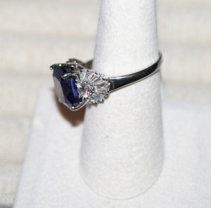 как выглядит 13.36CTW Blue /1.33CWT White Cubic Zirconia Rhodium over Sterling Ring 925 SZ 11 фото