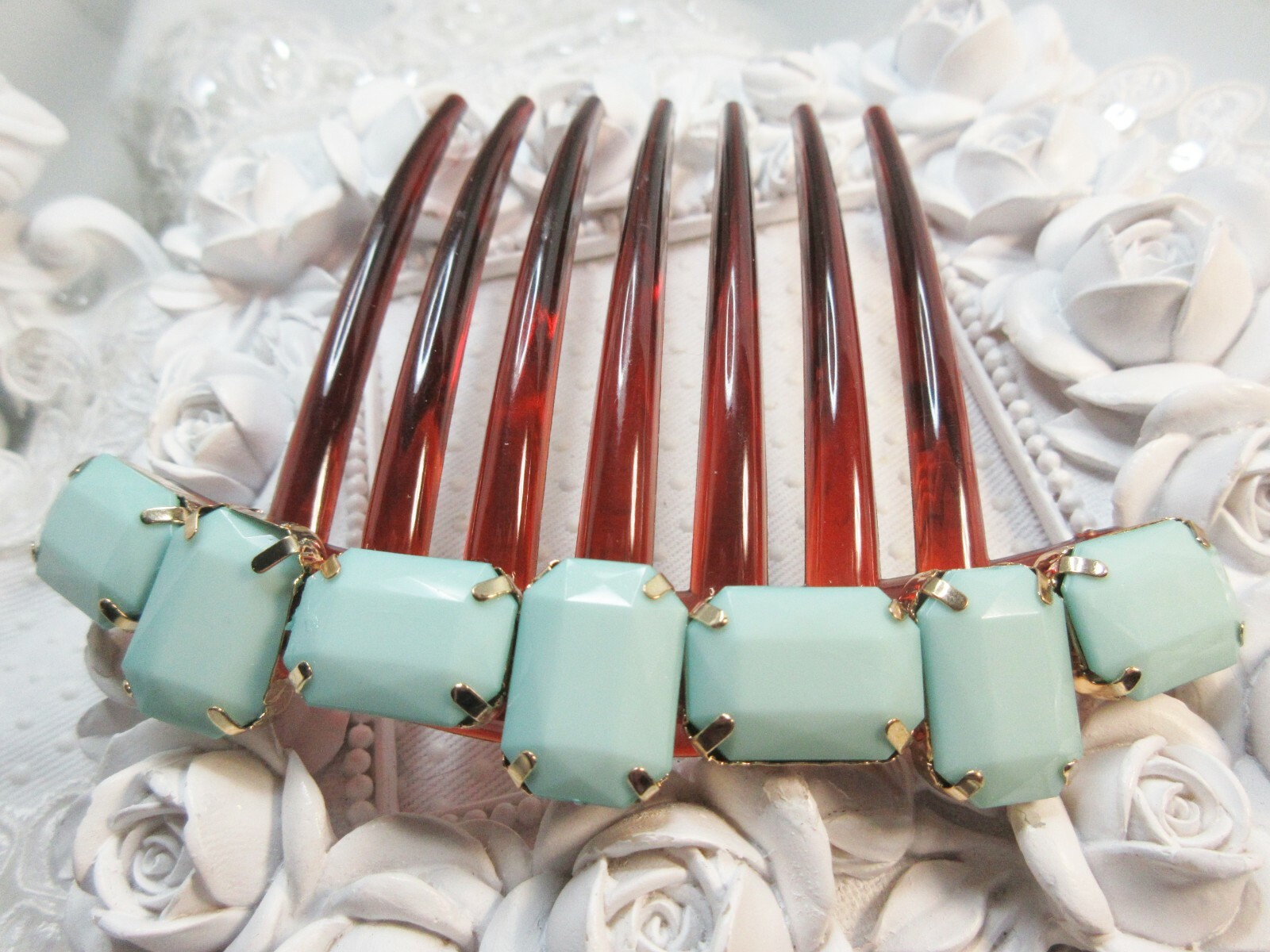 как выглядит Mint Green Rhinestones crystal french hair comb, Maximum Bling Thick hair comb фото