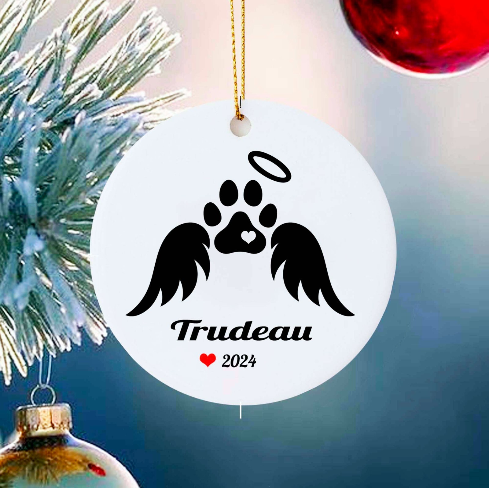 Dog Memorial ornament personalized name angel wings dog paw print gift loss pet