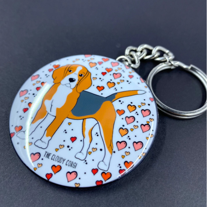 Beagle Dog Valentines Keychain Handmade Retro Pet Portrait Art Gift Accessory