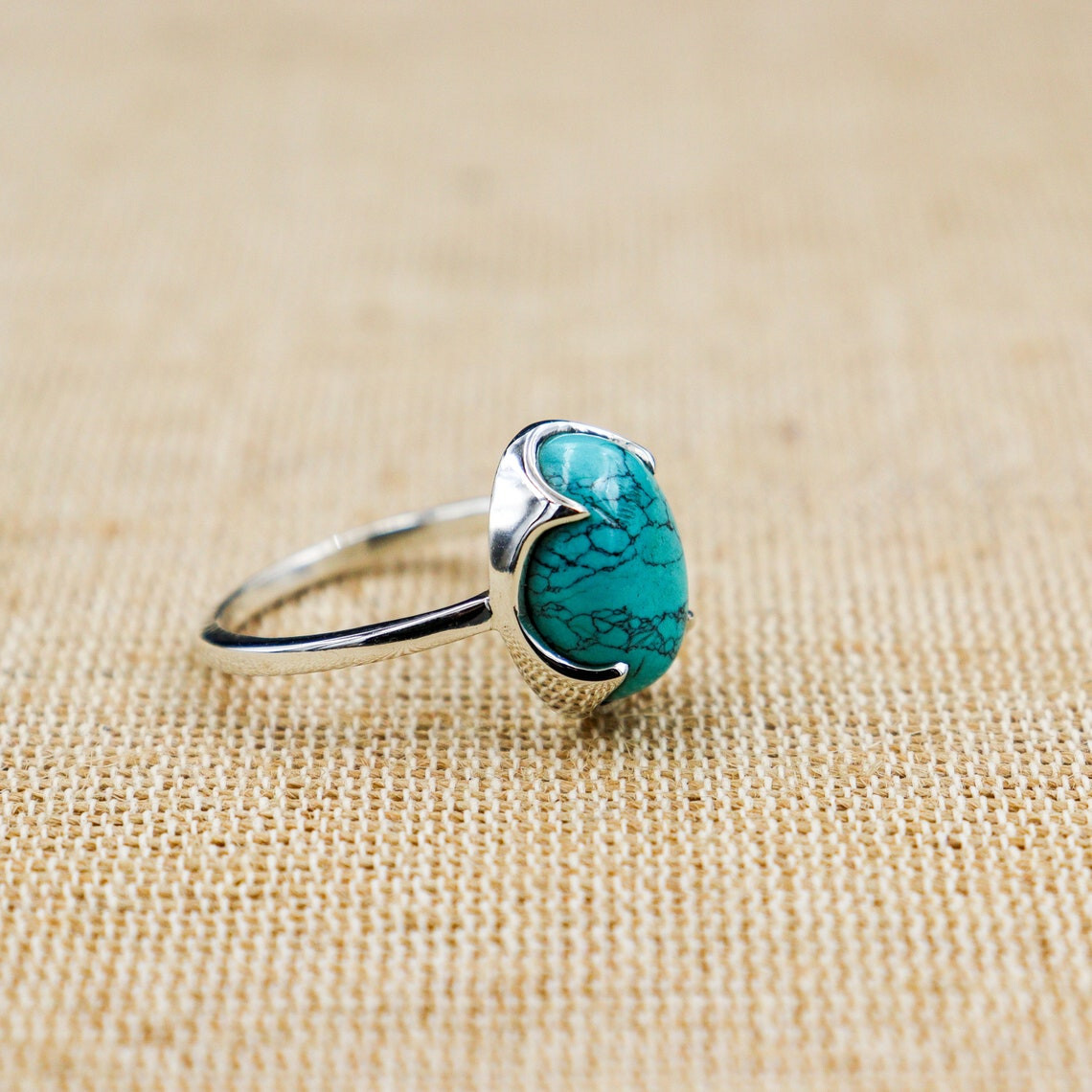 Natural Turquoise Boho 925 Sterling Silver Handmade Statement Women Ring 168