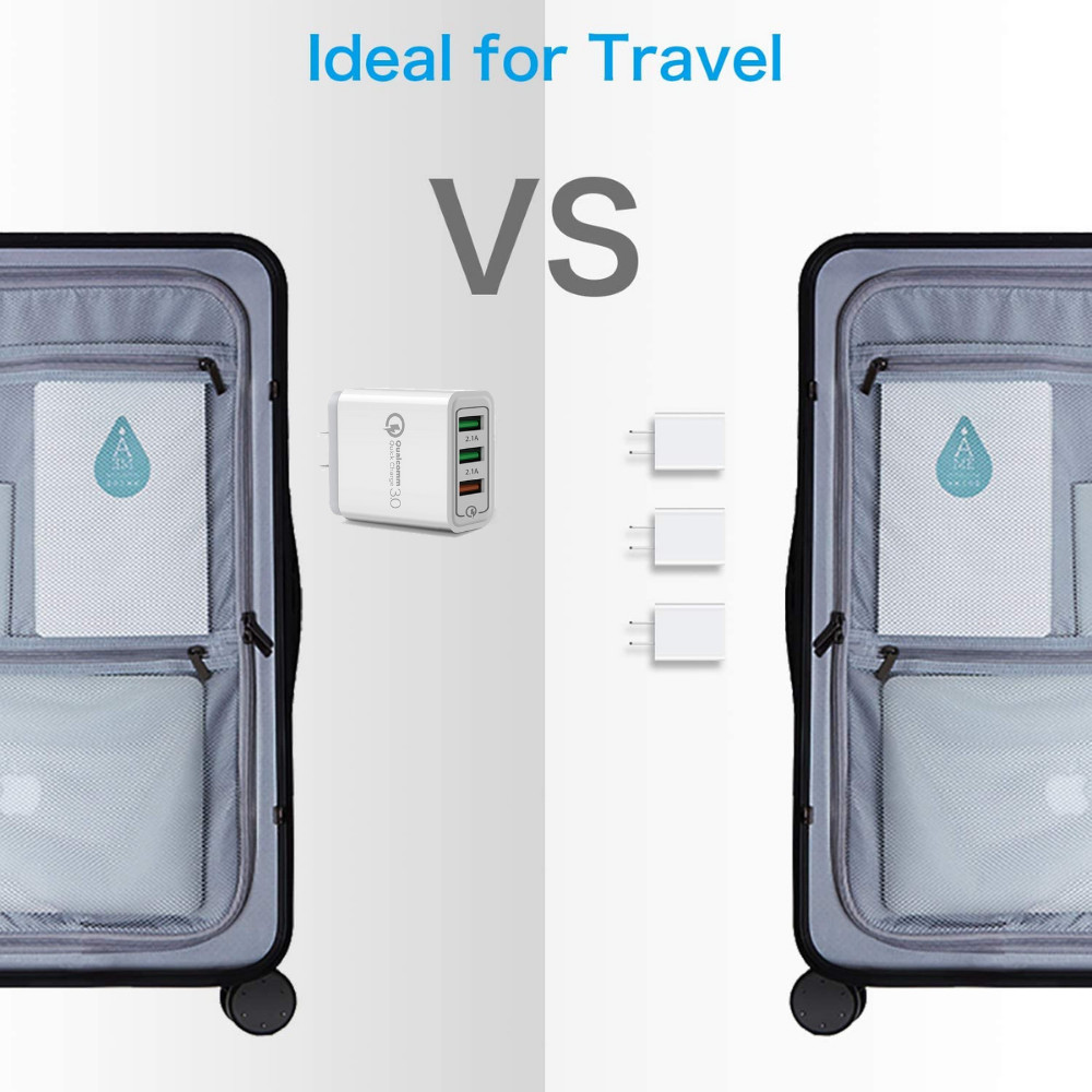 Fast Charge, Quick Charge, Portable, QC 3.0 Travel Adapter, Qualcomm Quick Charge 3.0, Wall Charger Fast, Multi Port USB Wall Charger, AC Home Wall Charger, 3 Ports Power Adapter, US Plug |