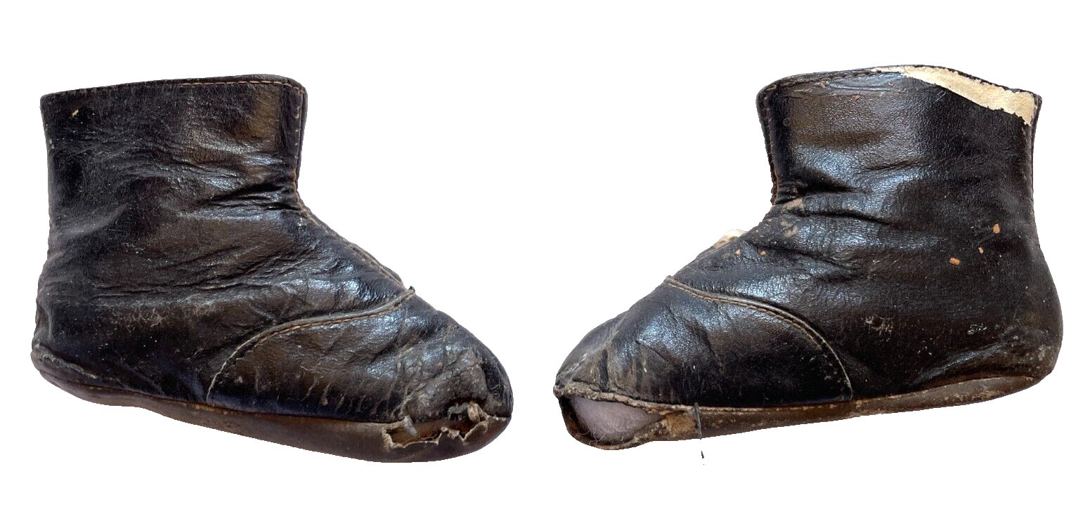 PAIR OF Victorian Baby/Doll/Children's Black Leather Button Doe Skin Shoes