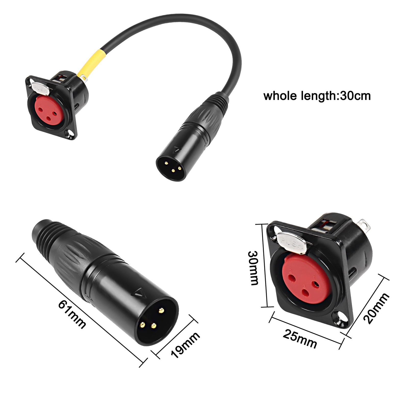 D-XLR Female Panel Mount to XLR Male Connector Pass Through Cable3 Pin Mic XL...