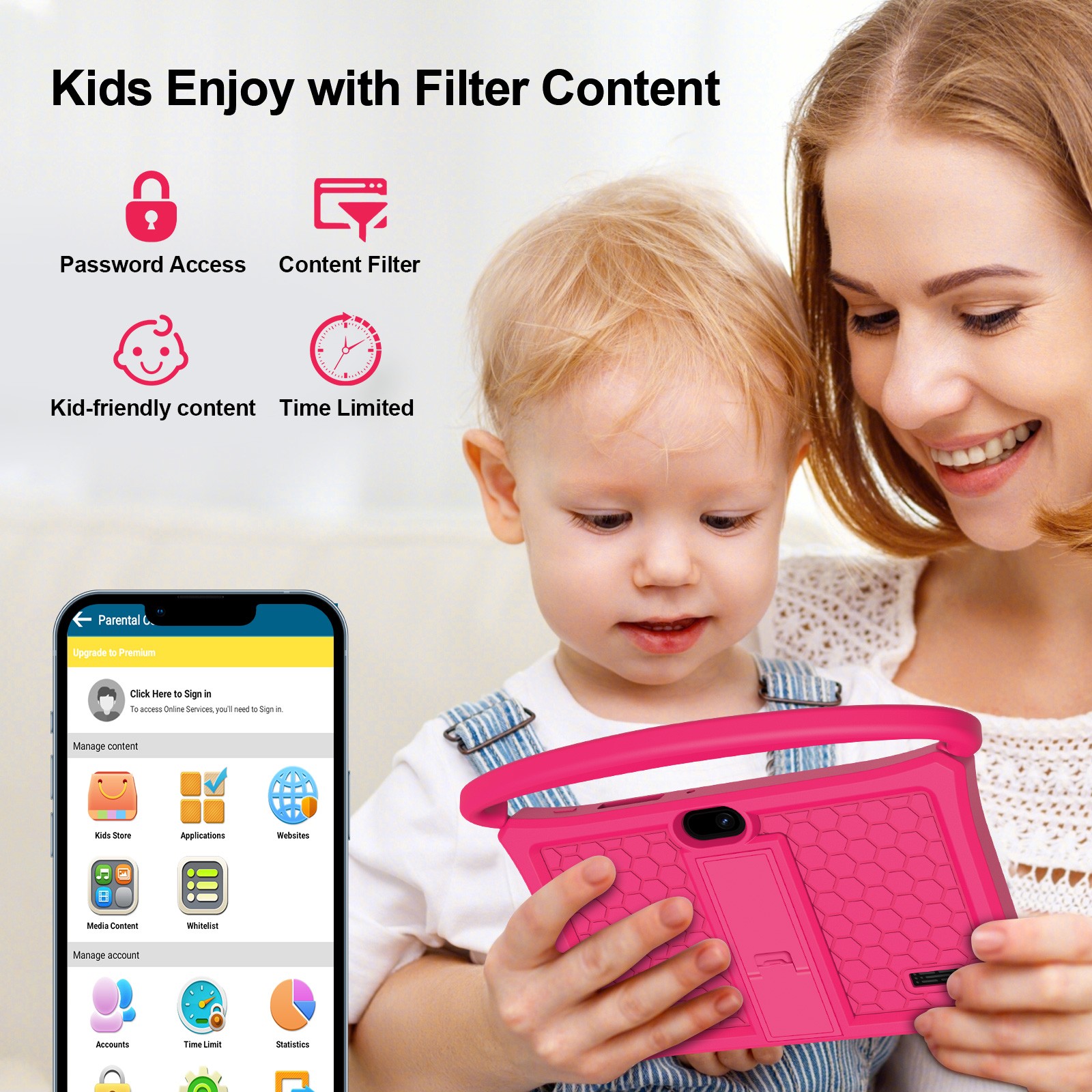 7 inch Kid Tablet PC Android 13 Education Tablets 32GB Pad Dual Camera Quad Core