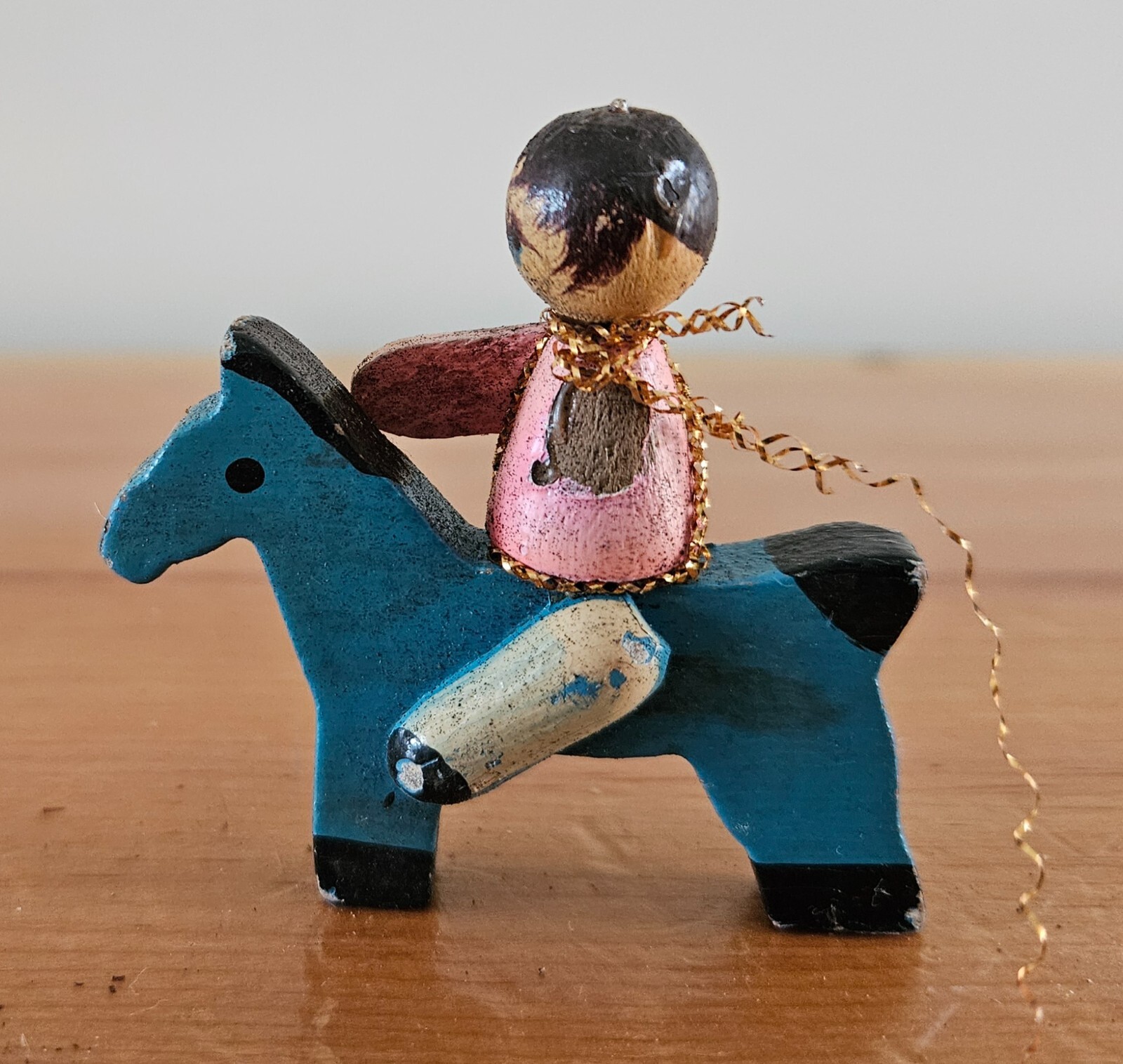 Vintage Wood Child on Rocking Horse Christmas Ornament