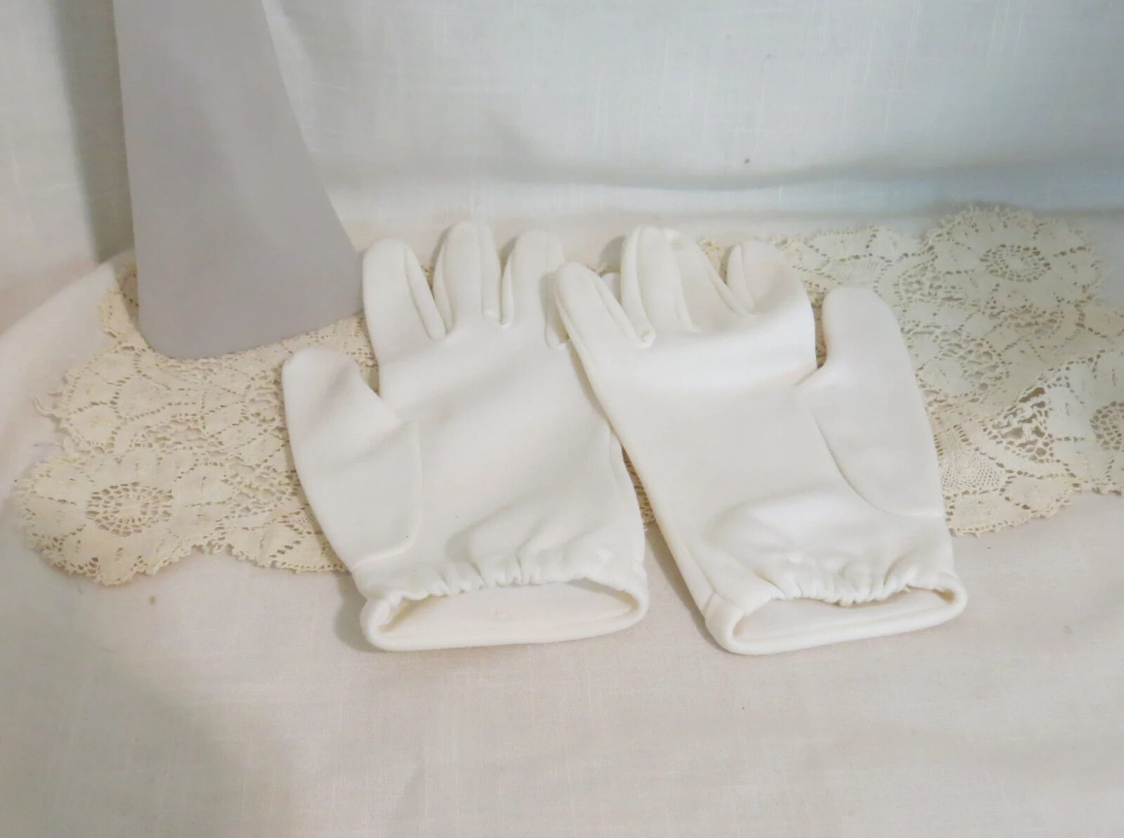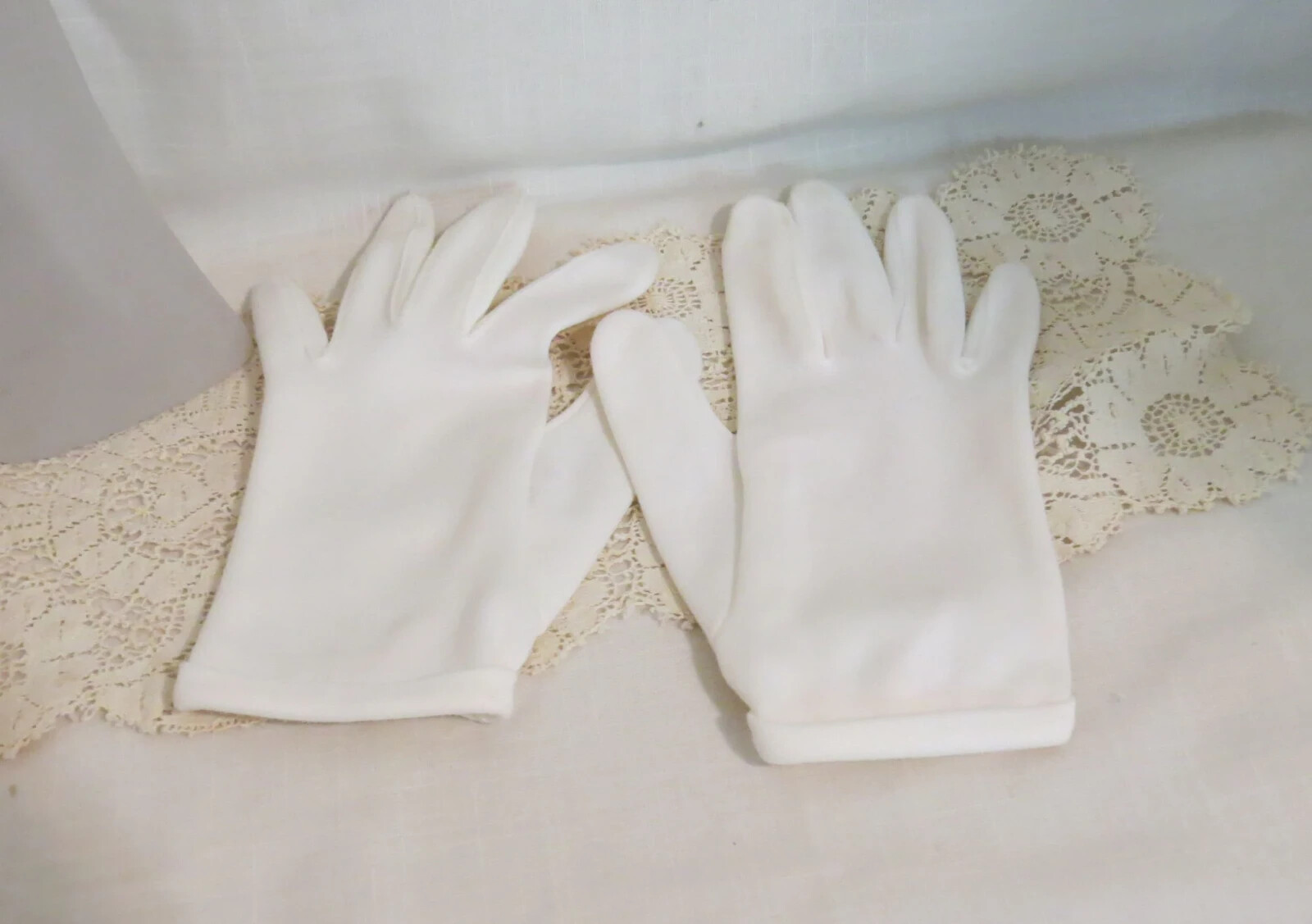 Vintage Jersey White Gloves Wrist Length Gloves Rolled Hems Gloves Dress Gloves